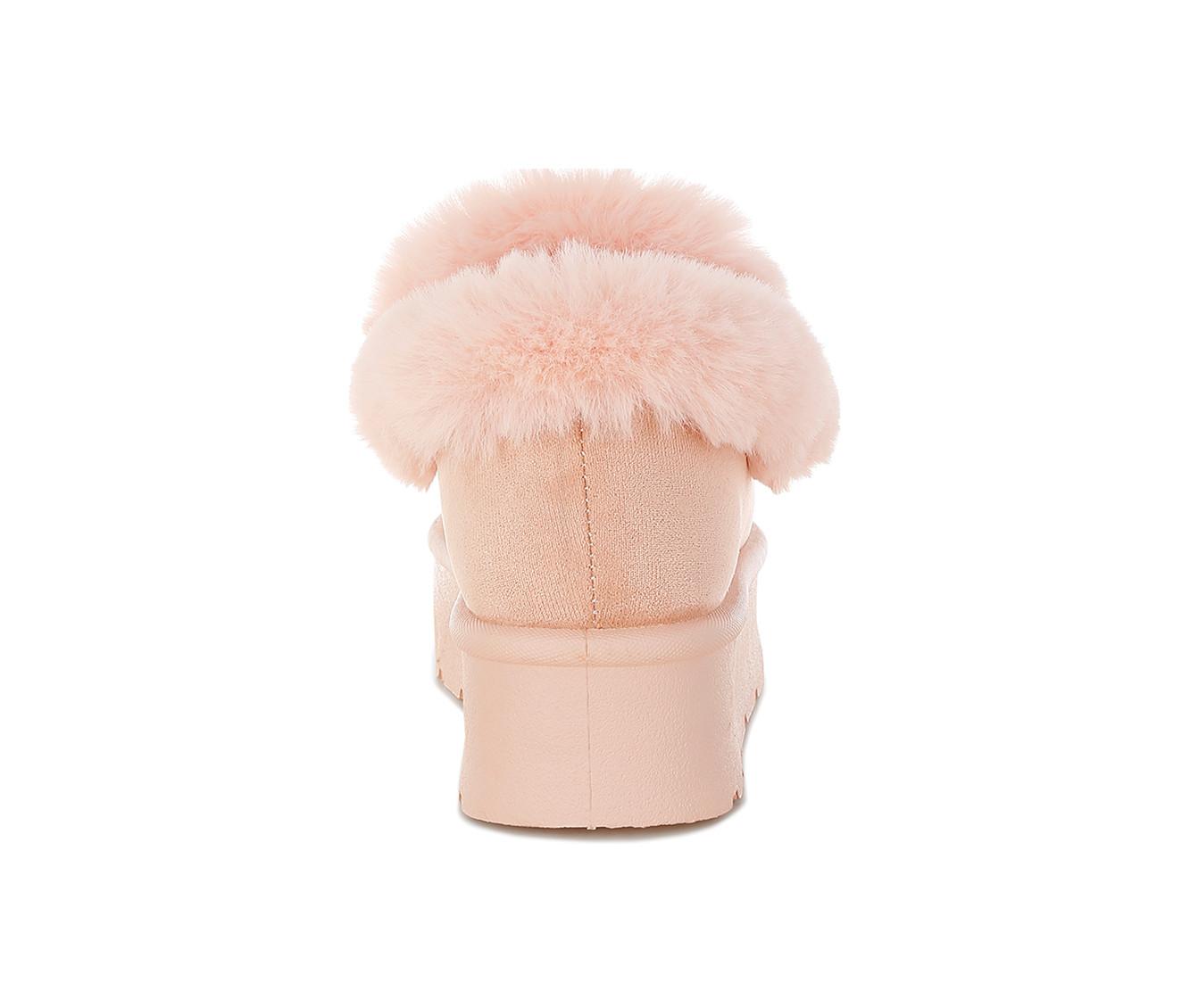 - Microfiber upper with faux fur collar