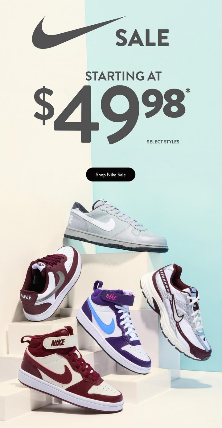 Save on select Nike for the family starting at just $49.98.