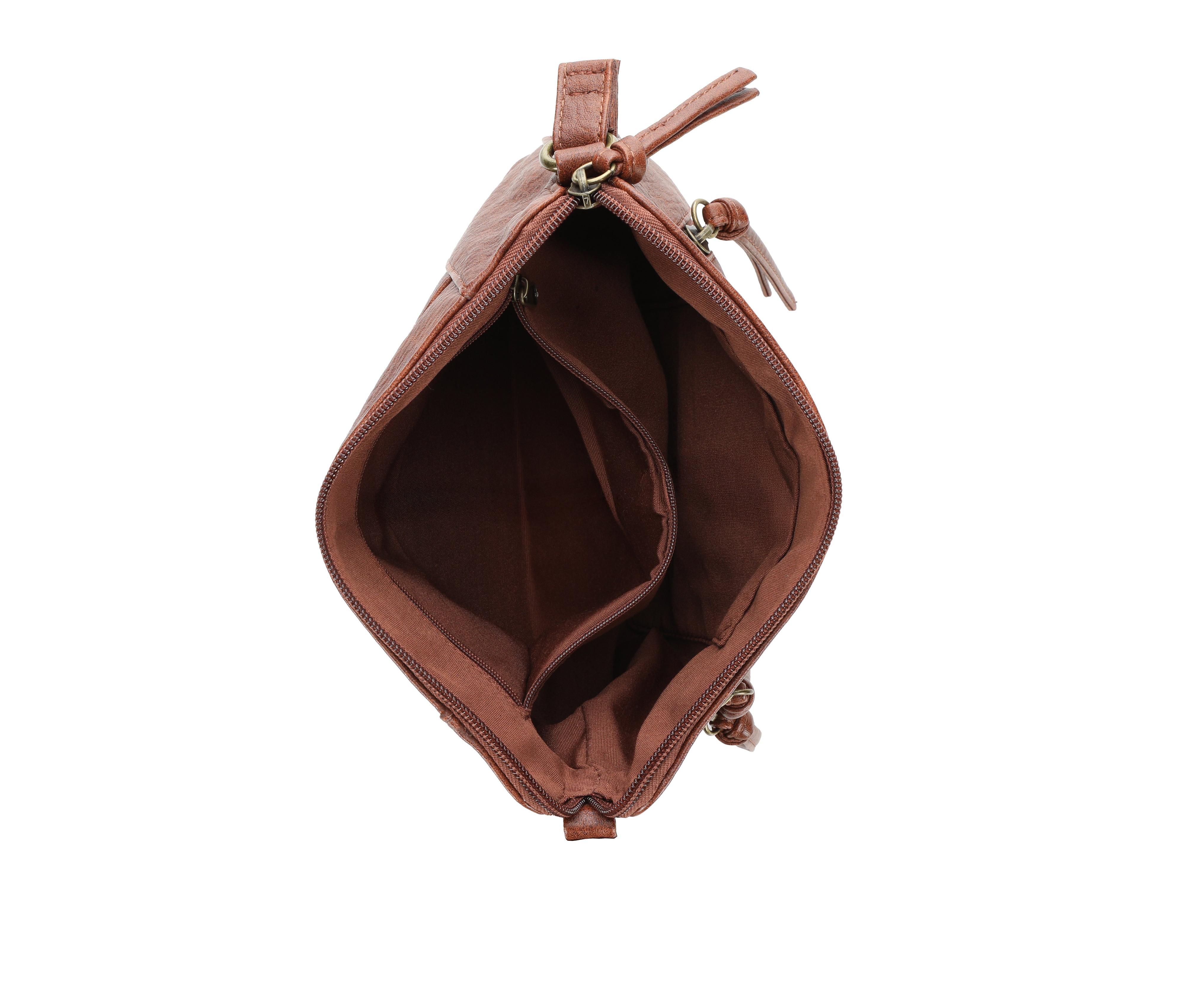 - Adjustable crossbody strap for hands-free wear