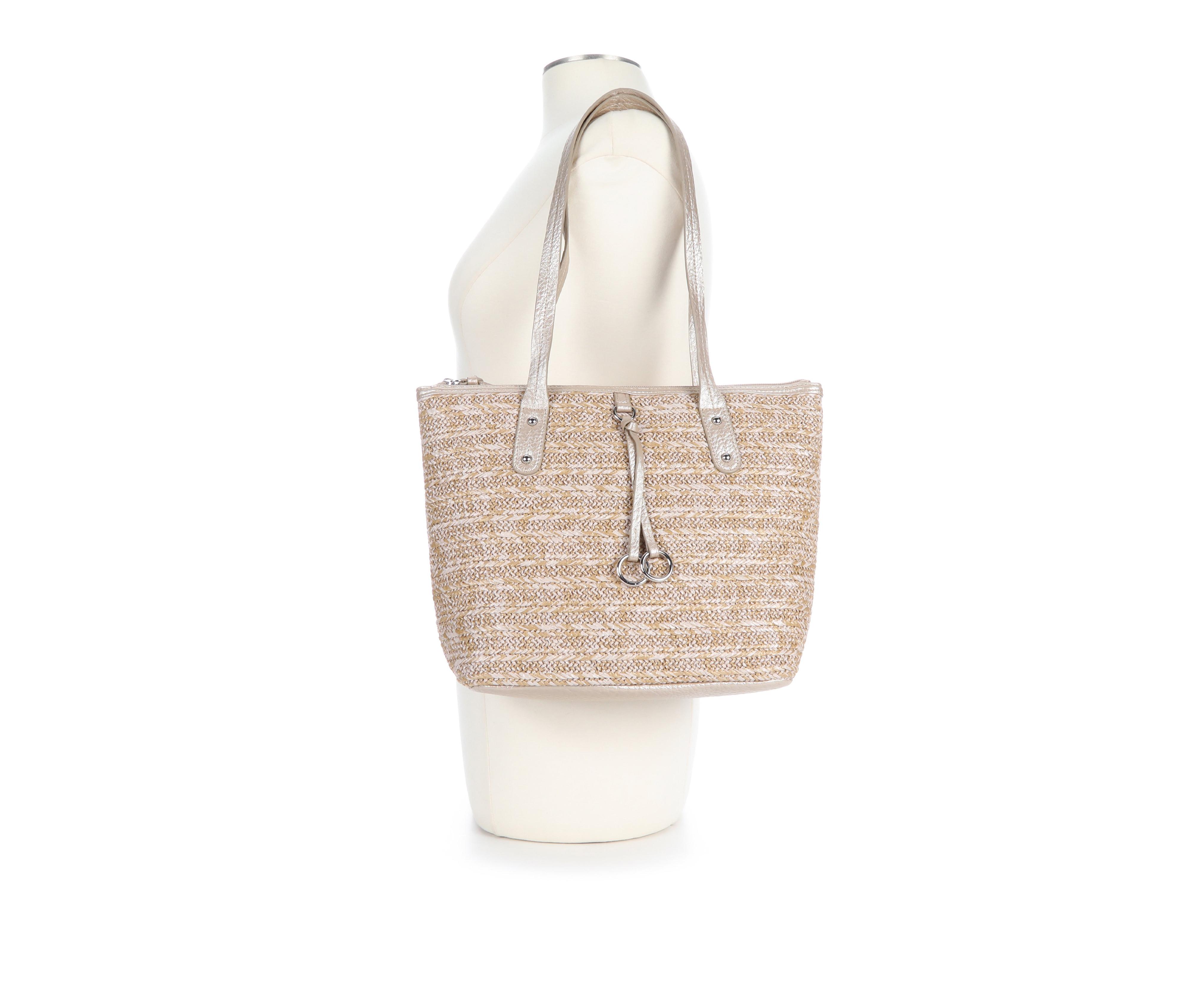 Bueno Of California Straw Top Zip Tote Handbag