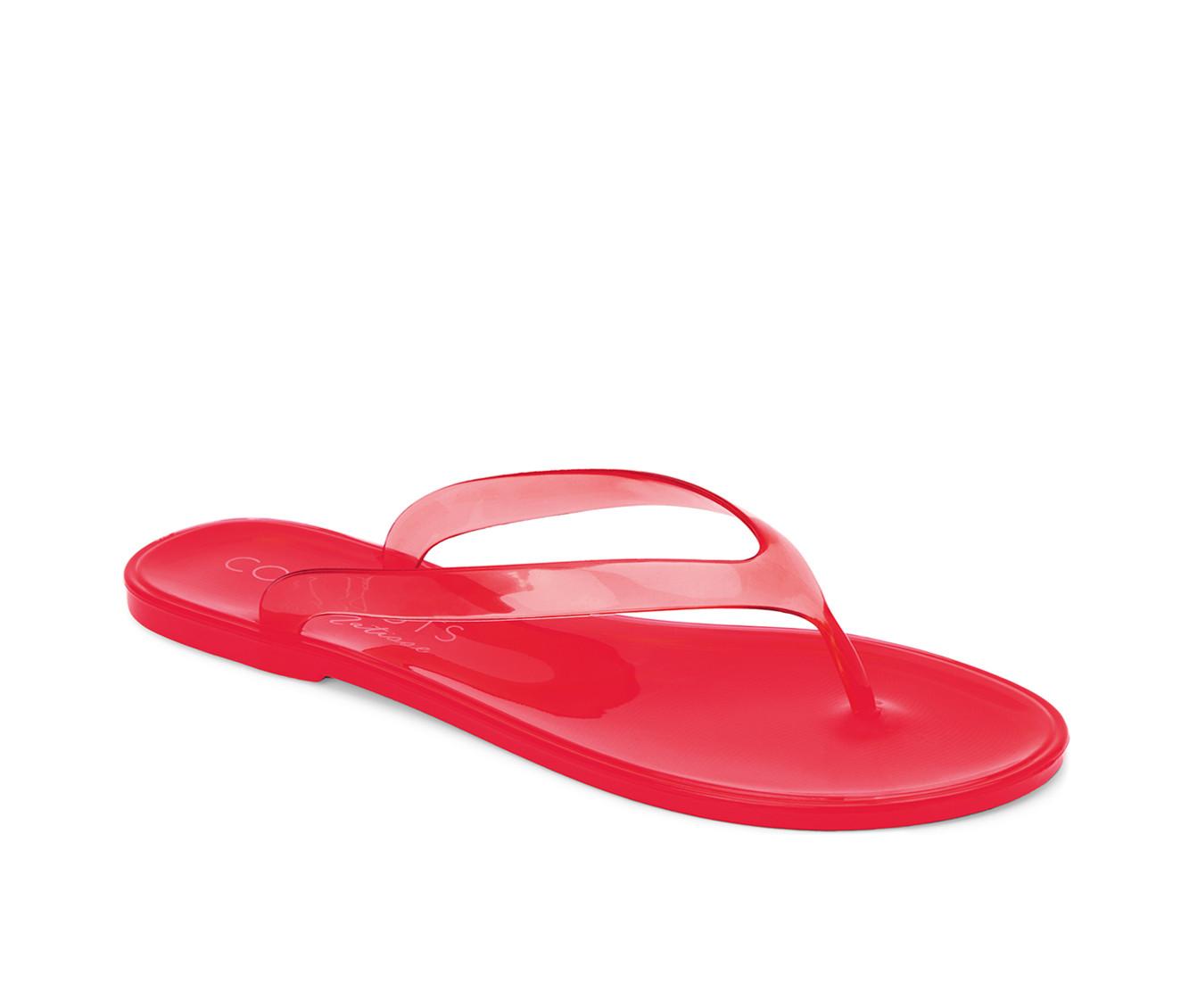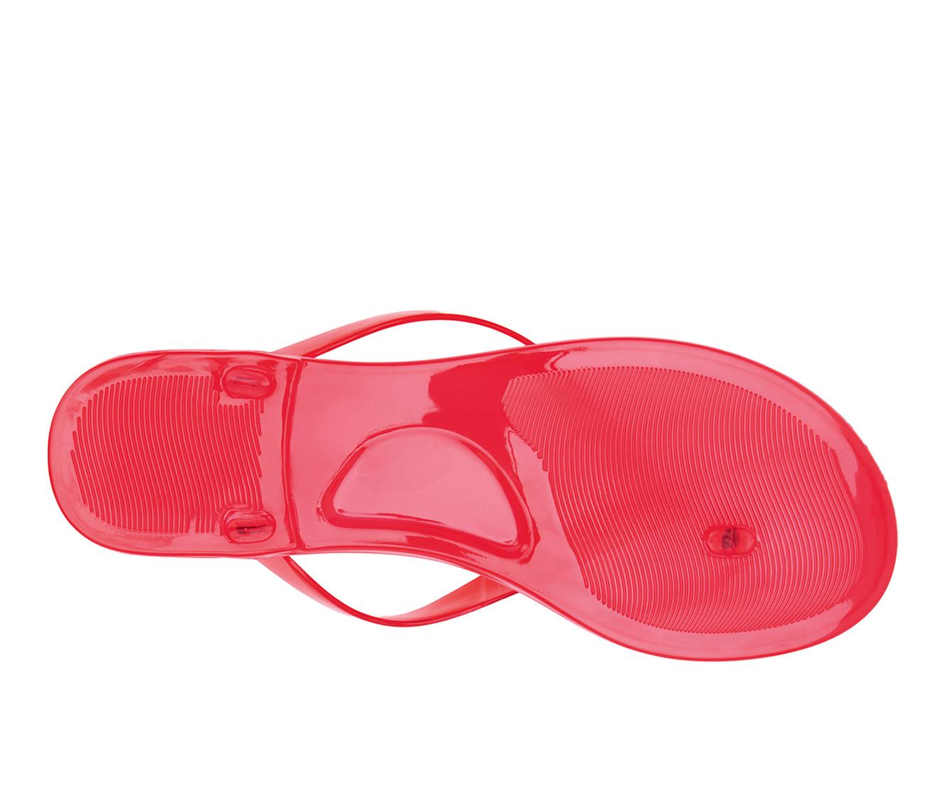 - Sleek thong strap design with a glossy finish