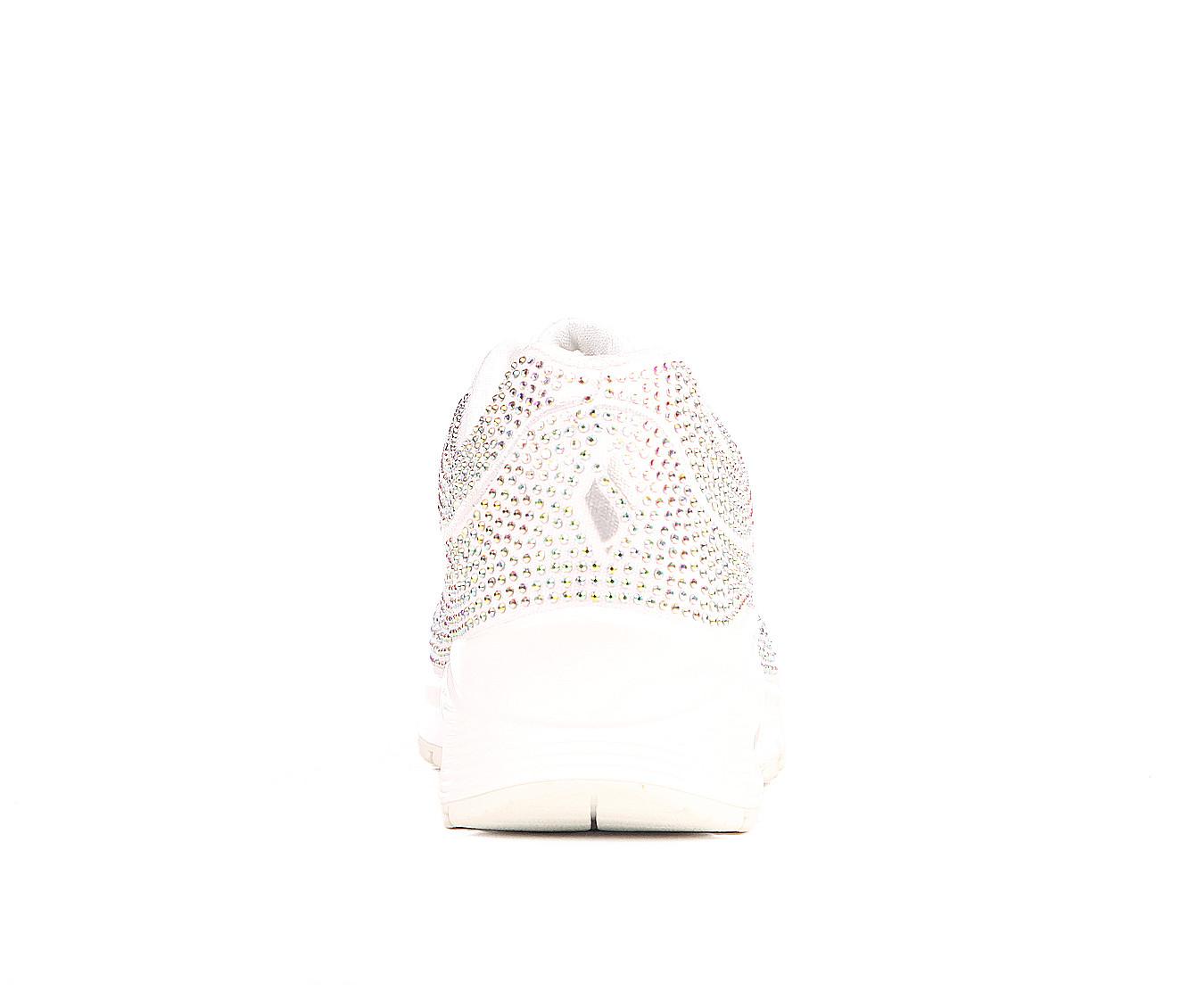 - Rhinestone covered textile upper