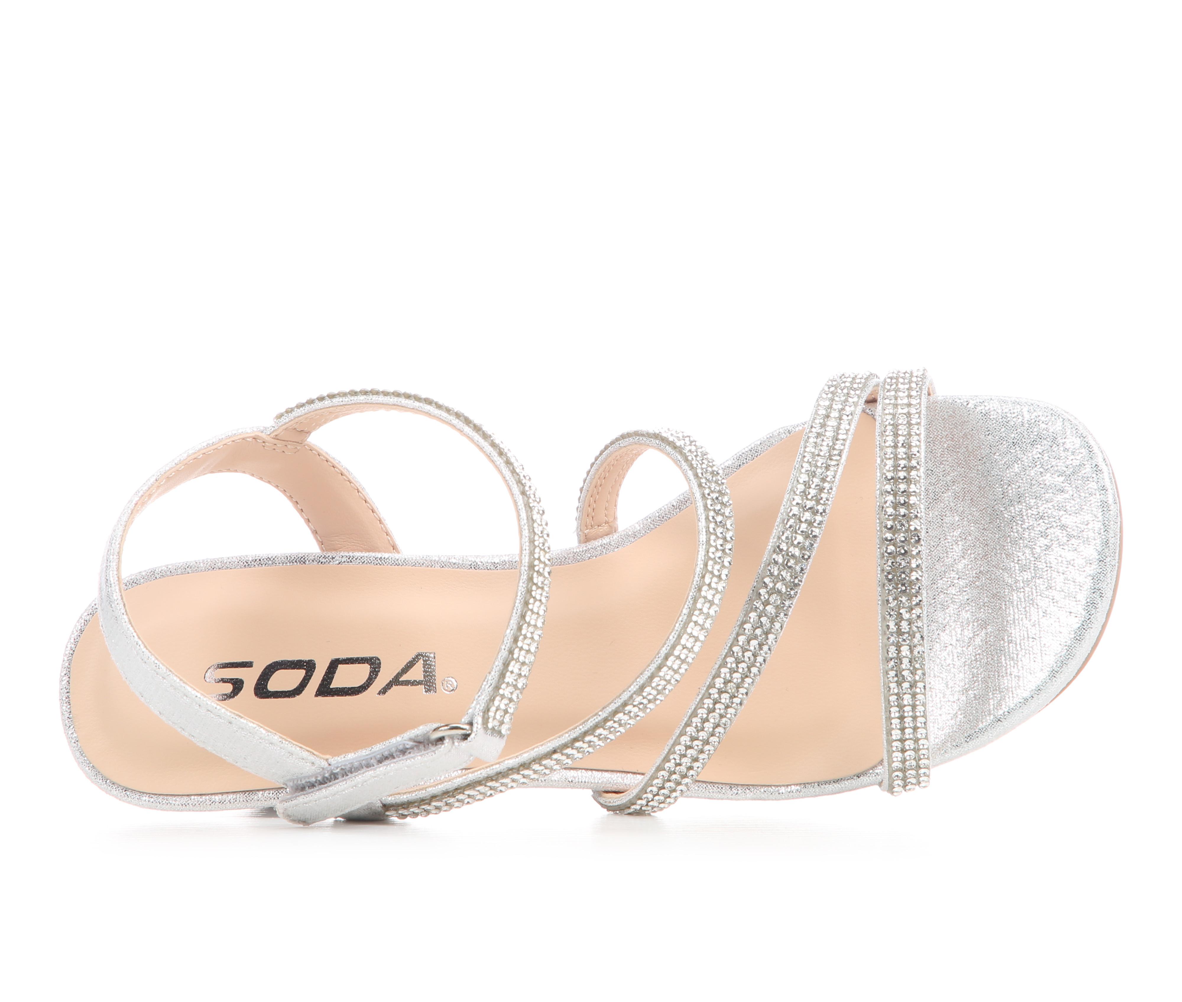 - Open toe silhouette for a strappy, dressed-up look