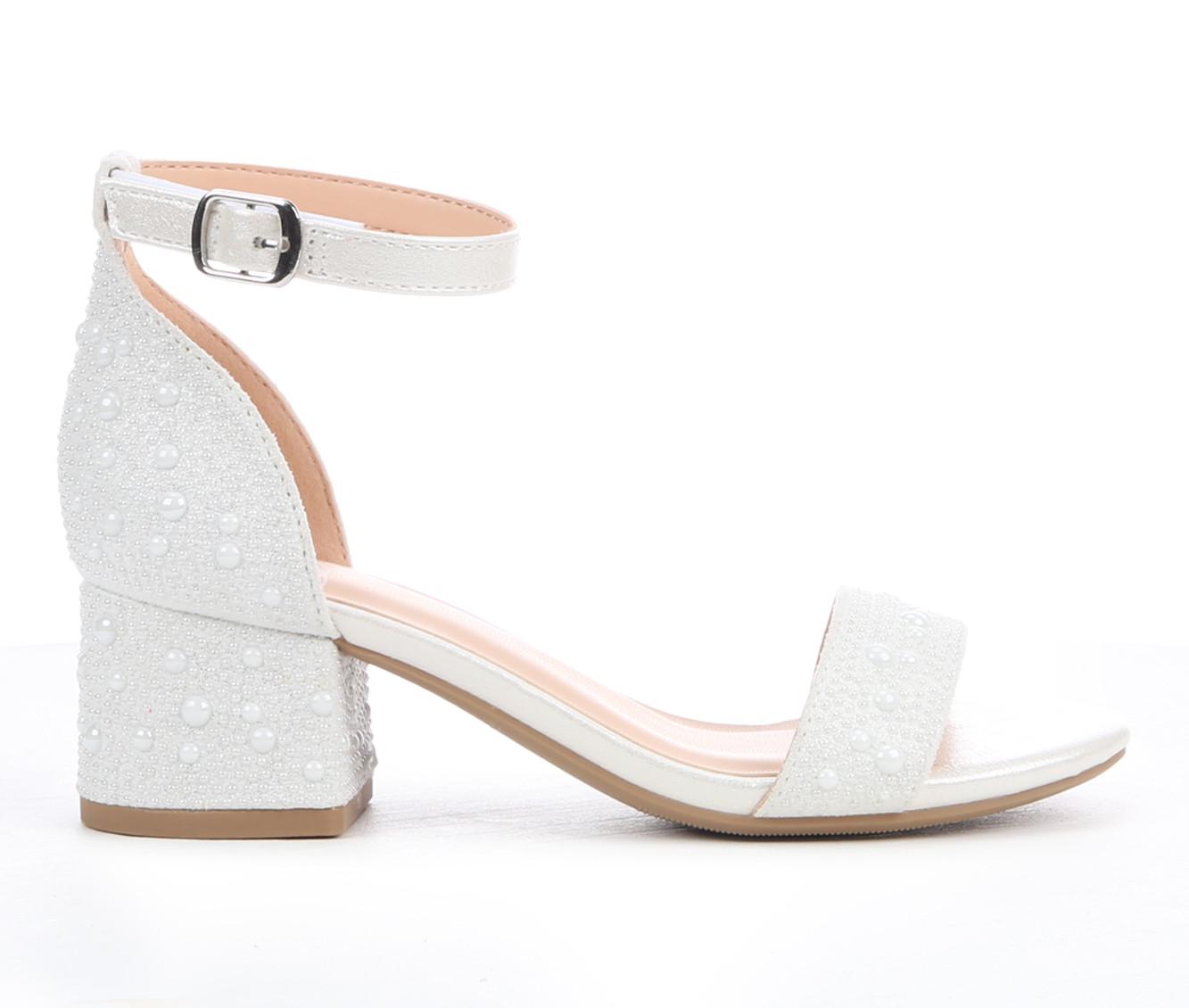 - Pearl and rhinestone detailing on toe strap and heel