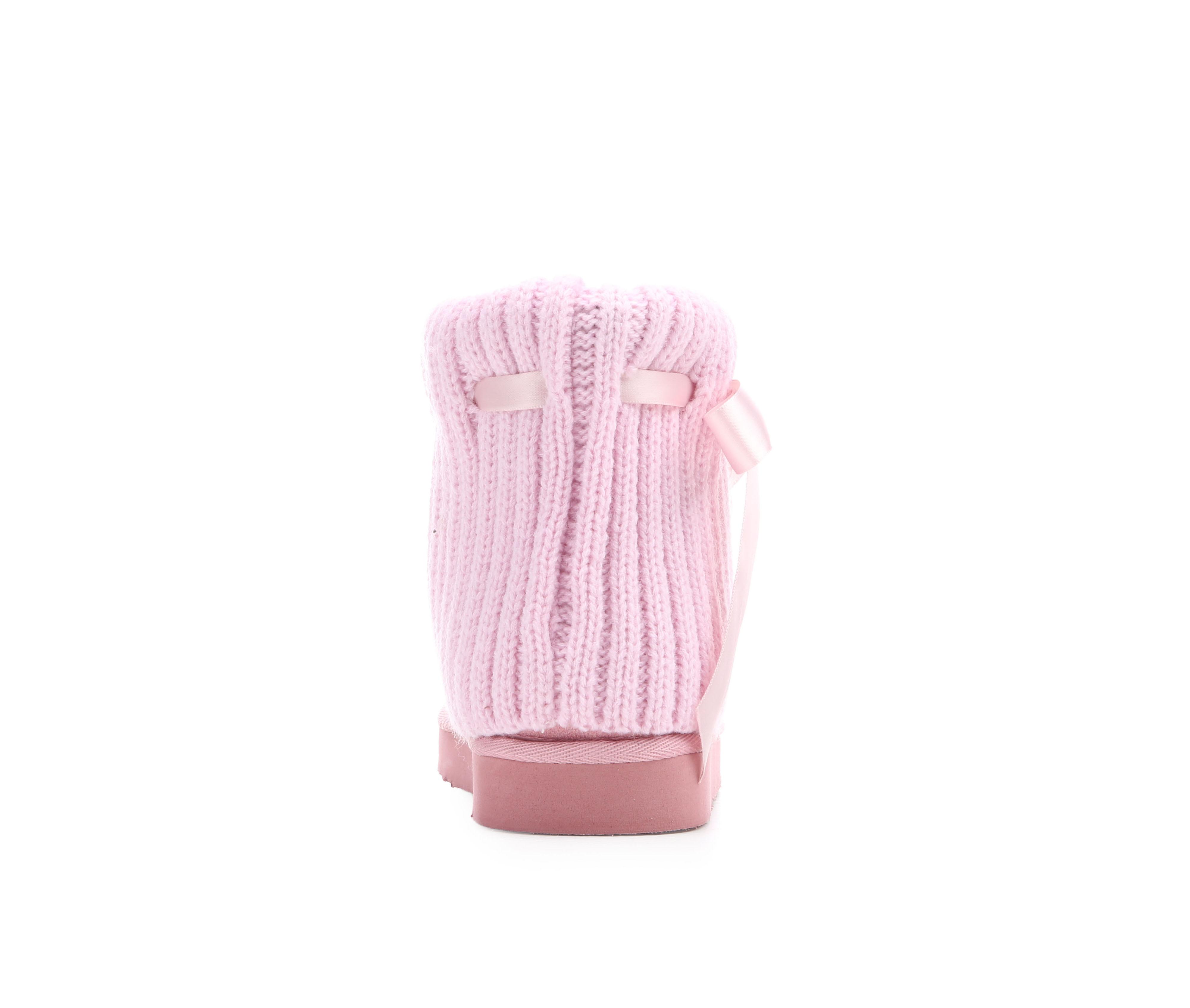 - Sweater-knit fold-over cuff design