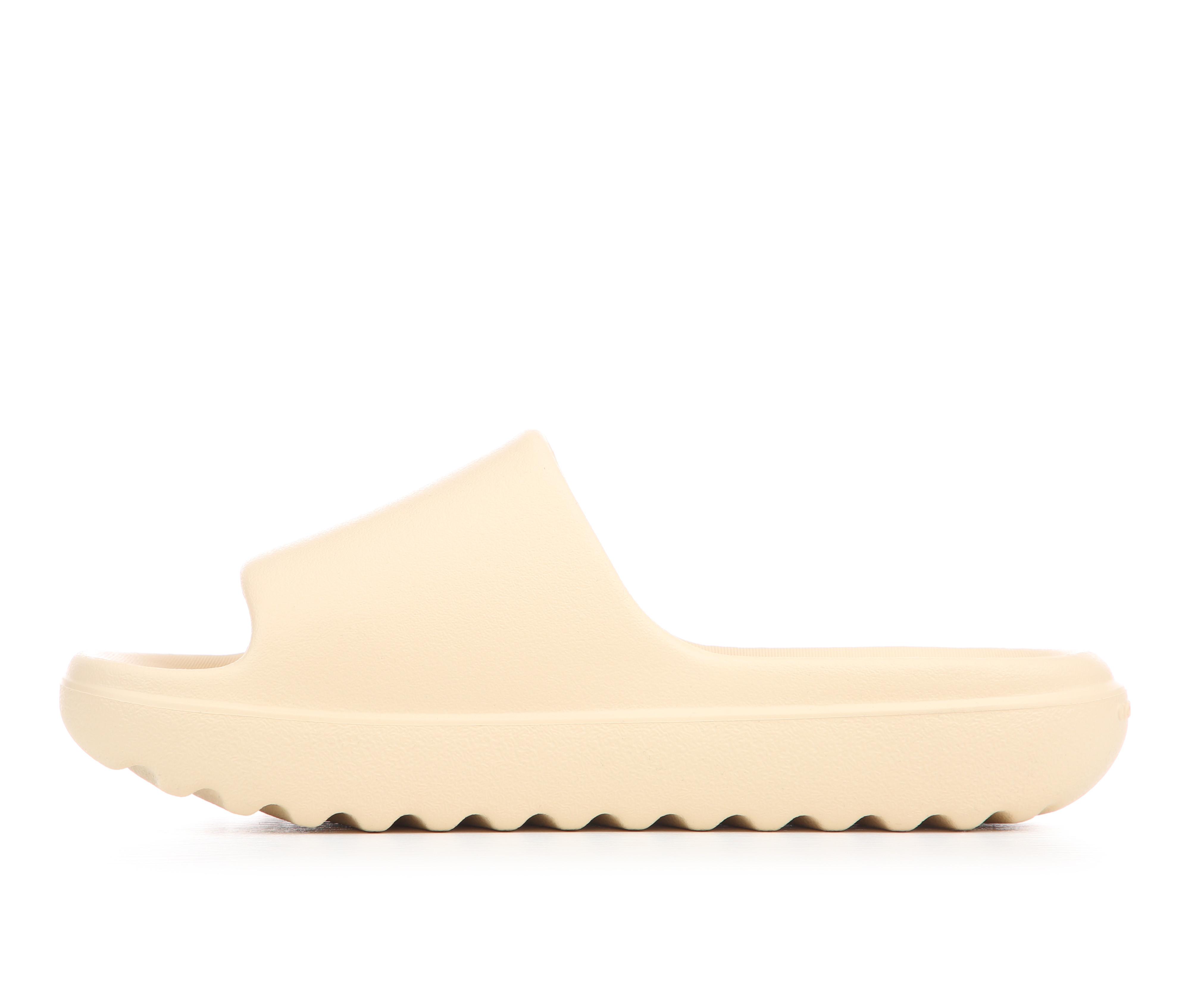 - Slip-on slide sandal silhouette for easy on/off