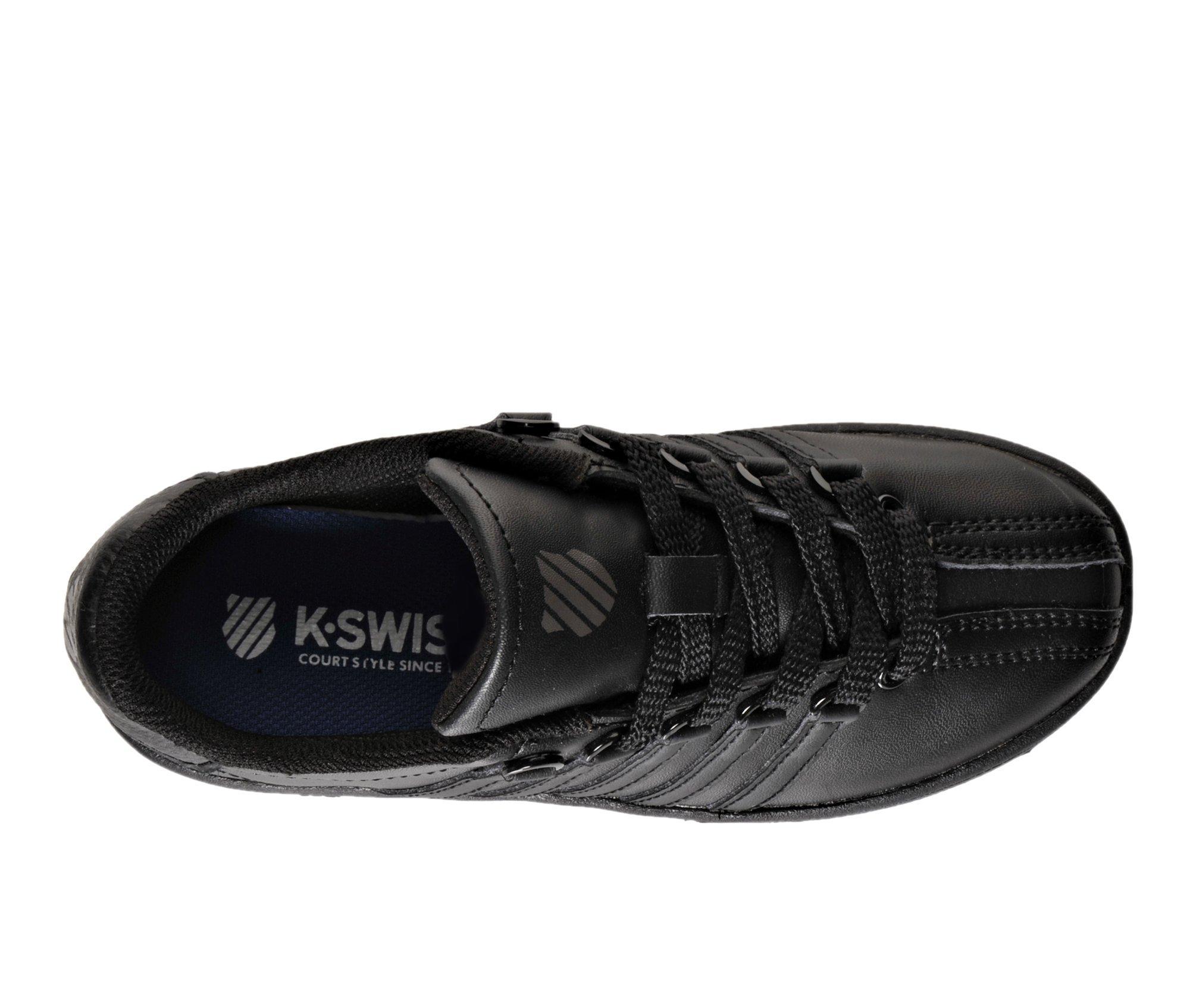 - K-Swiss shield branding logos at tongue and heel