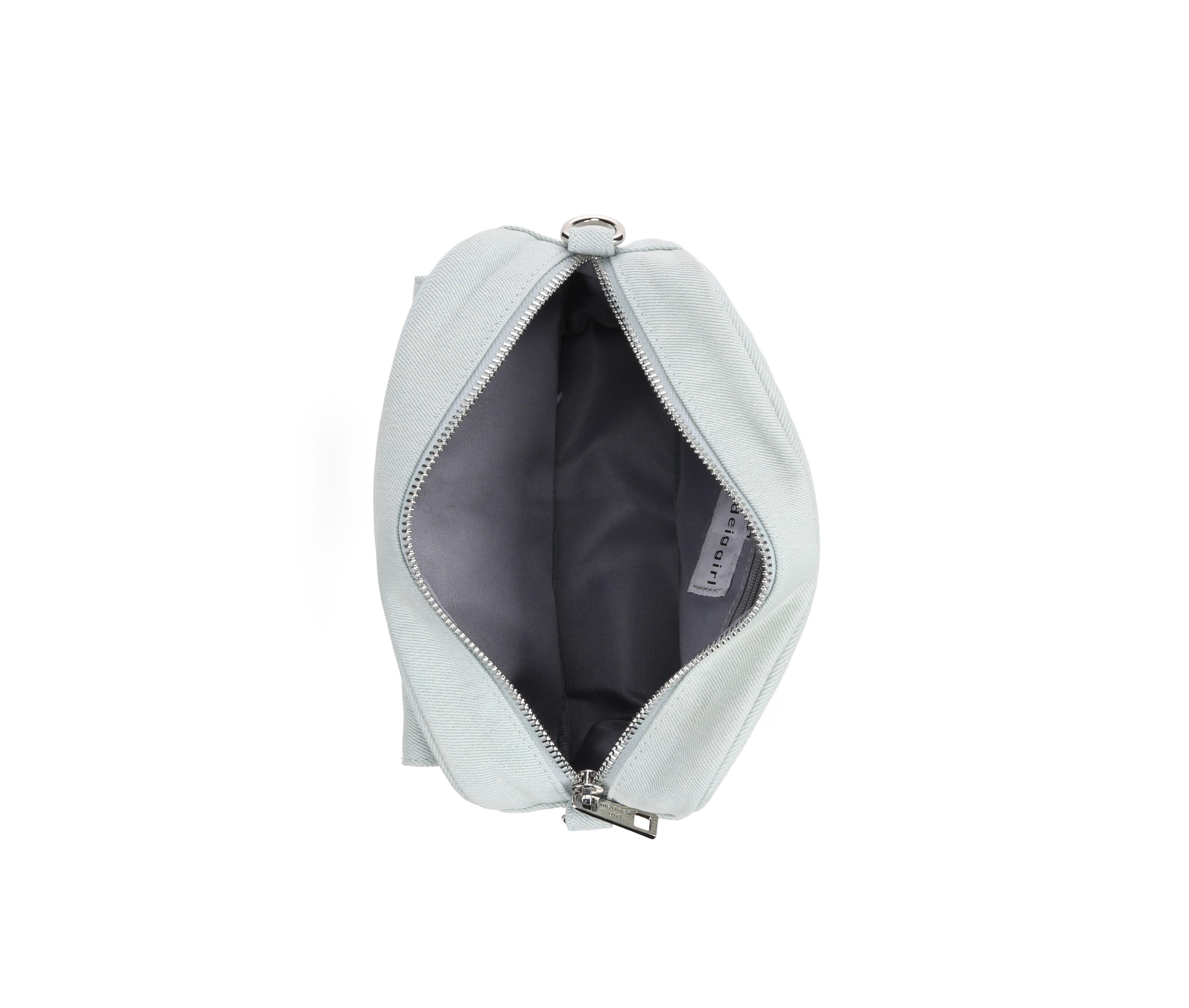 - Textured denim-style fabric exterior for laid-back appeal