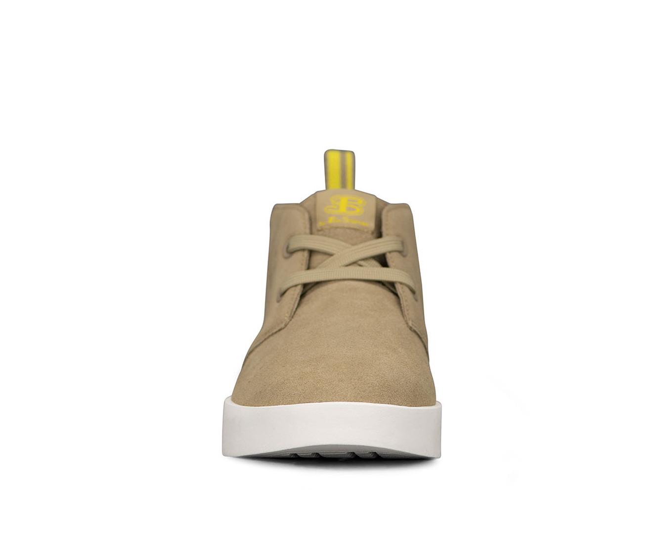 - Ankle-high chukka silhouette