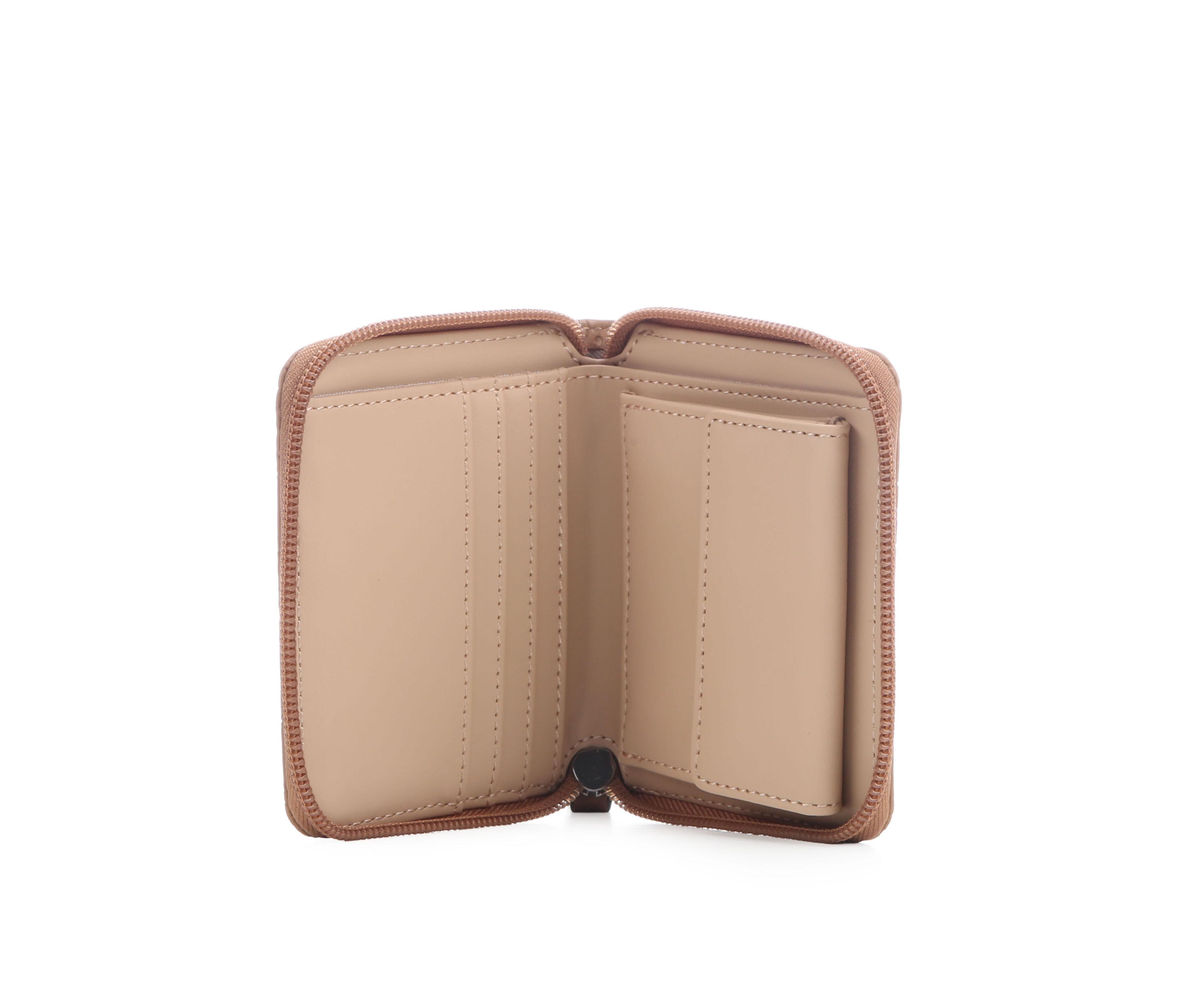 - Compact zip-around wallet silhouette