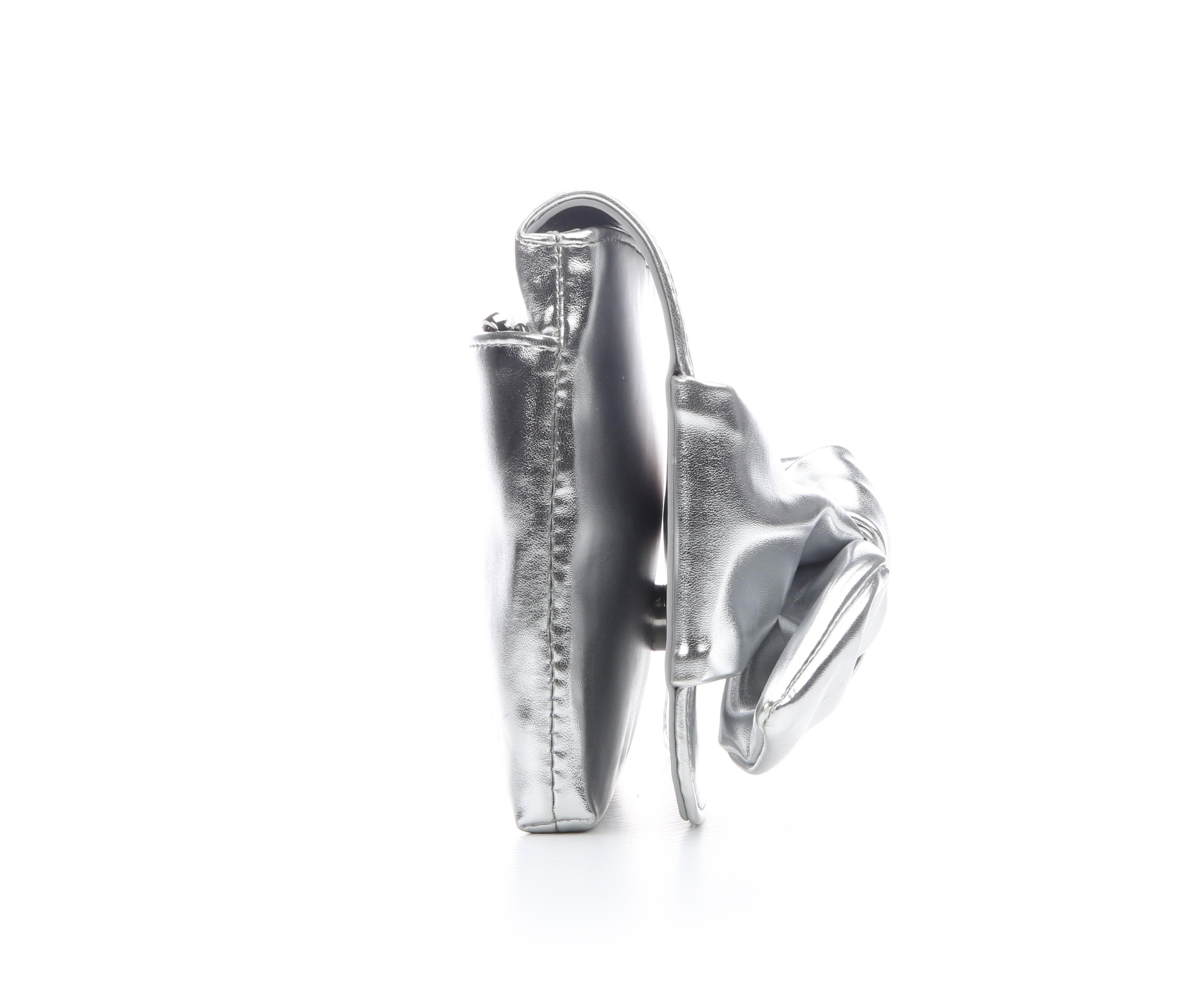 - Shiny metallic faux-leather exterior