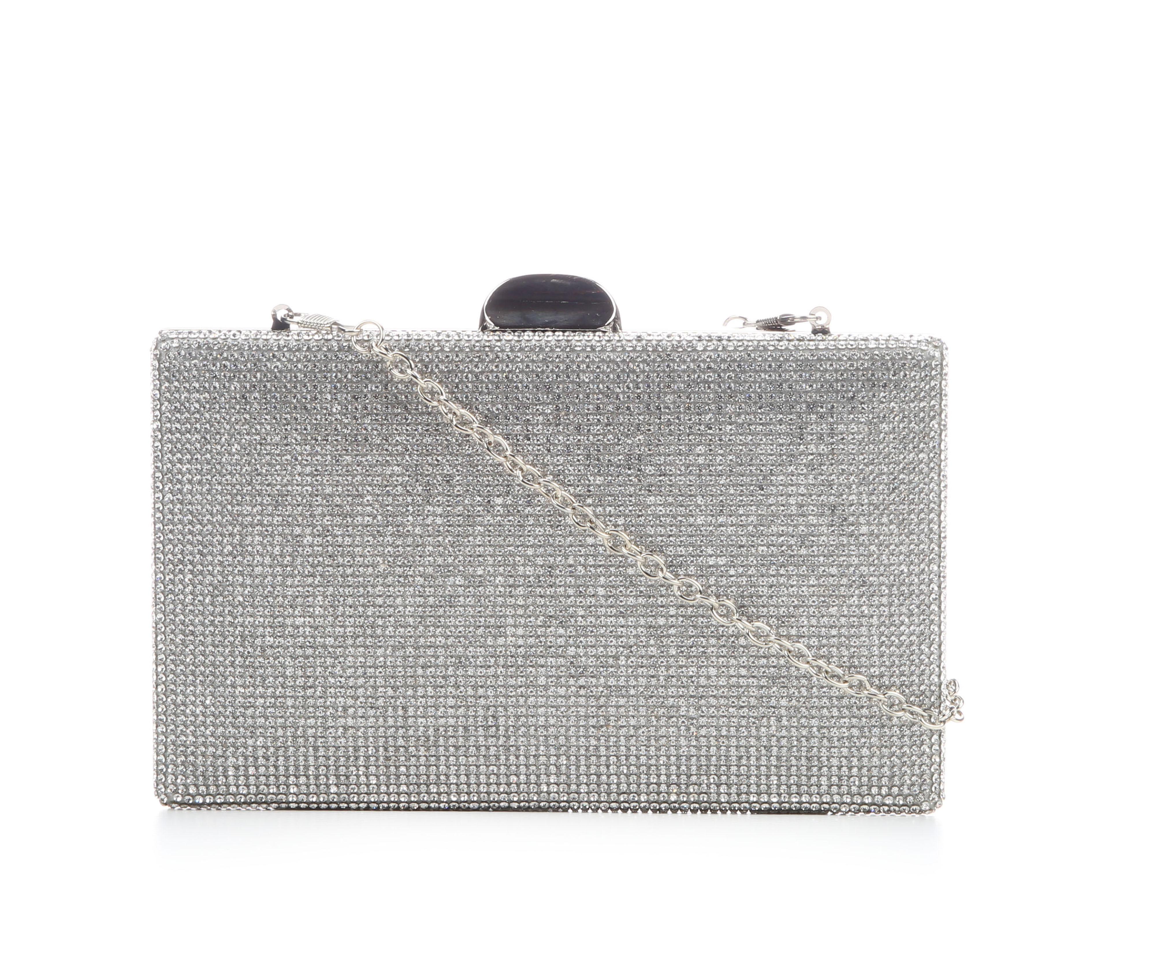 - Compact clutch design with glitter finish