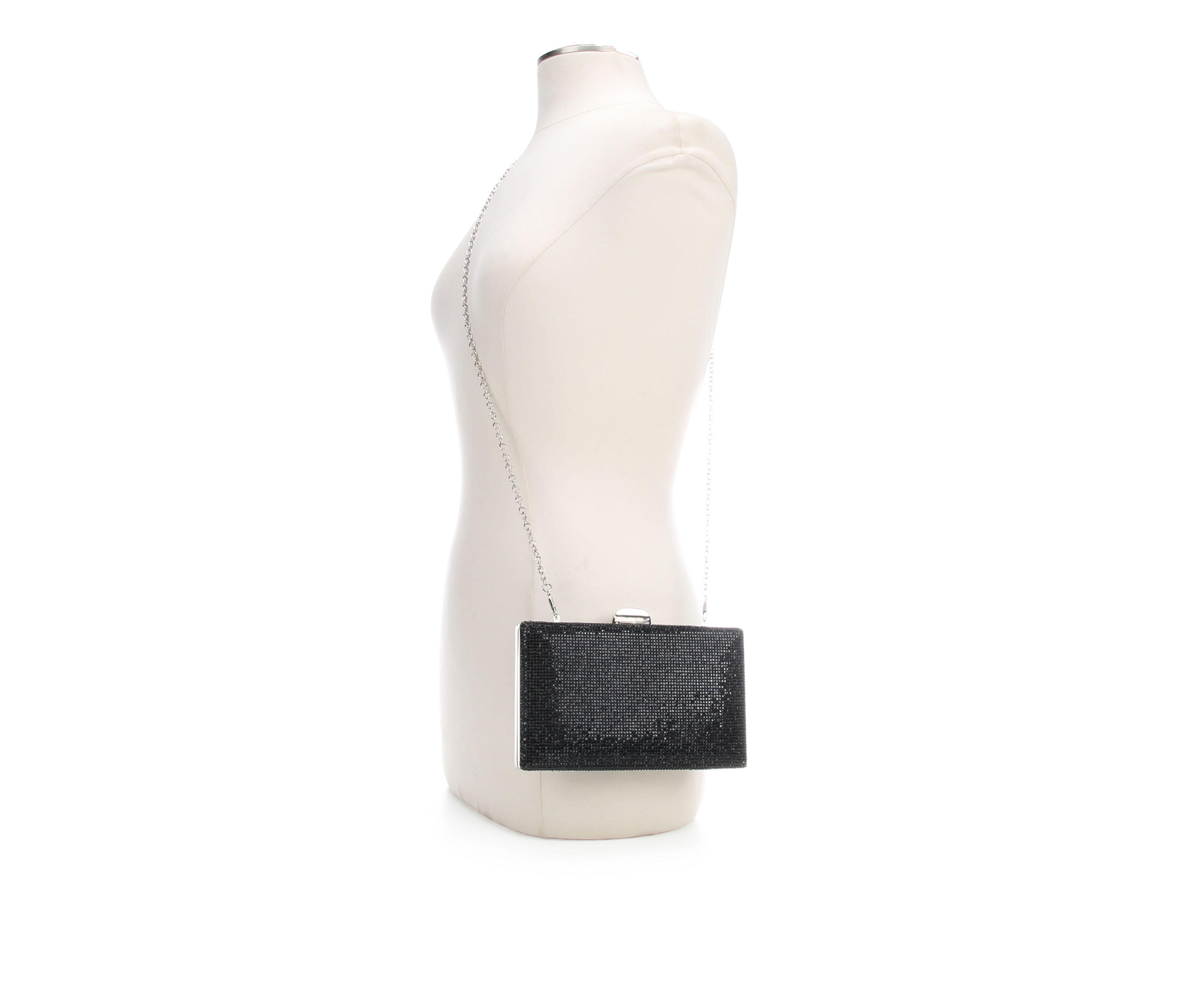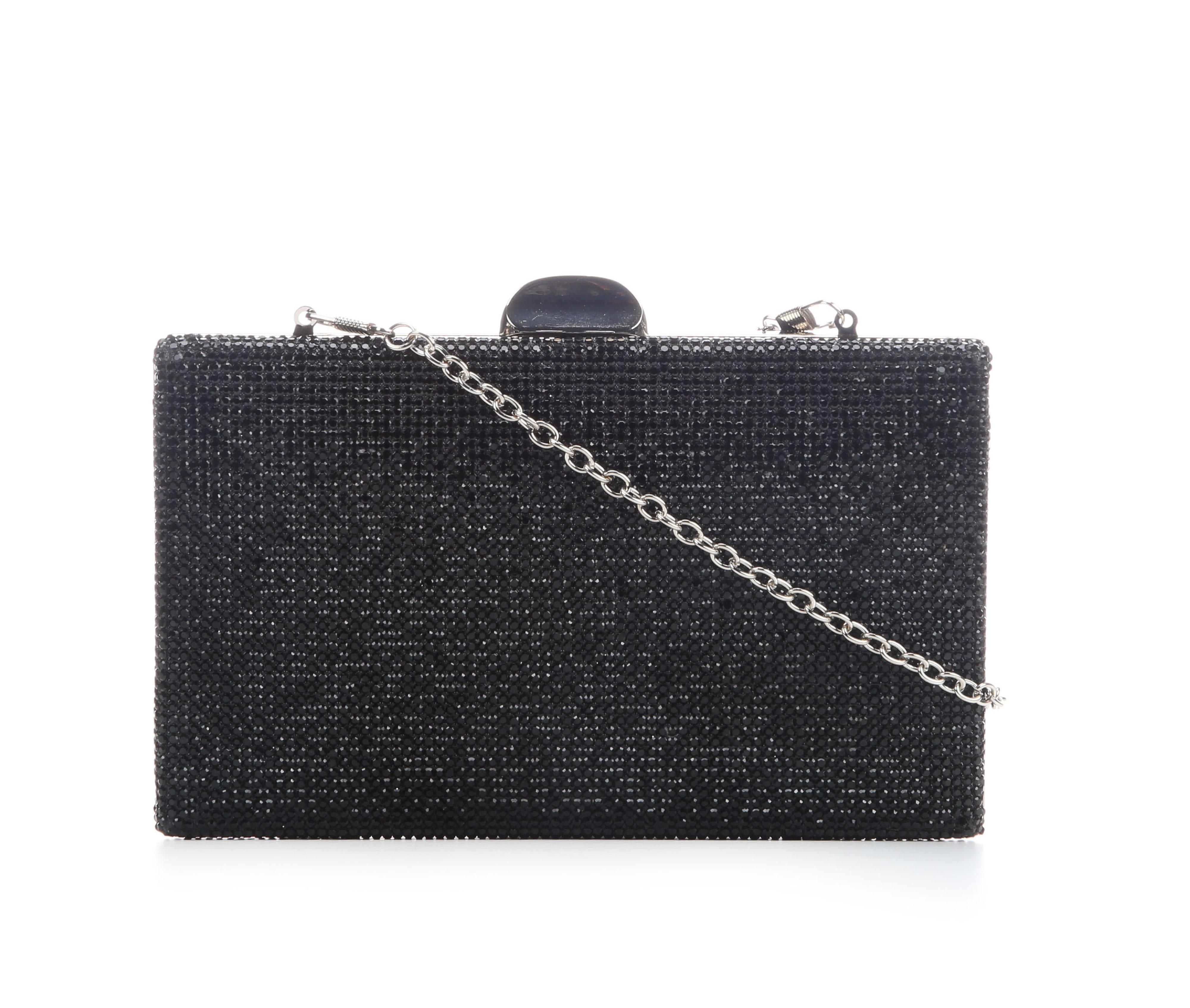 - Compact clutch design with glitter finish
