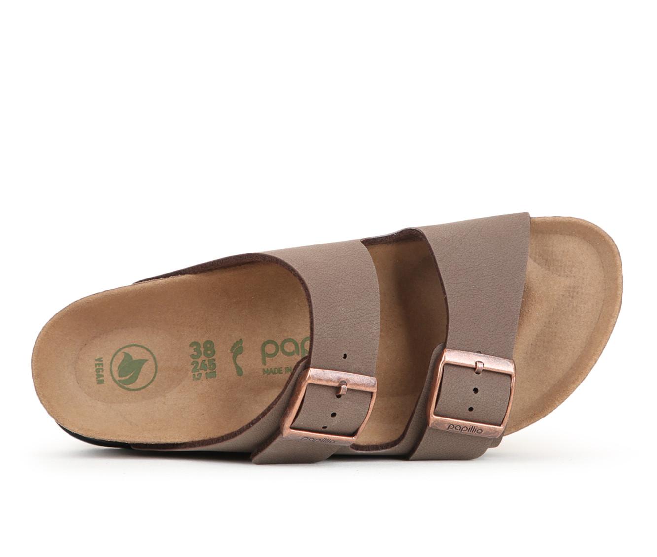 - Contoured cork footbed provides optimal arch support