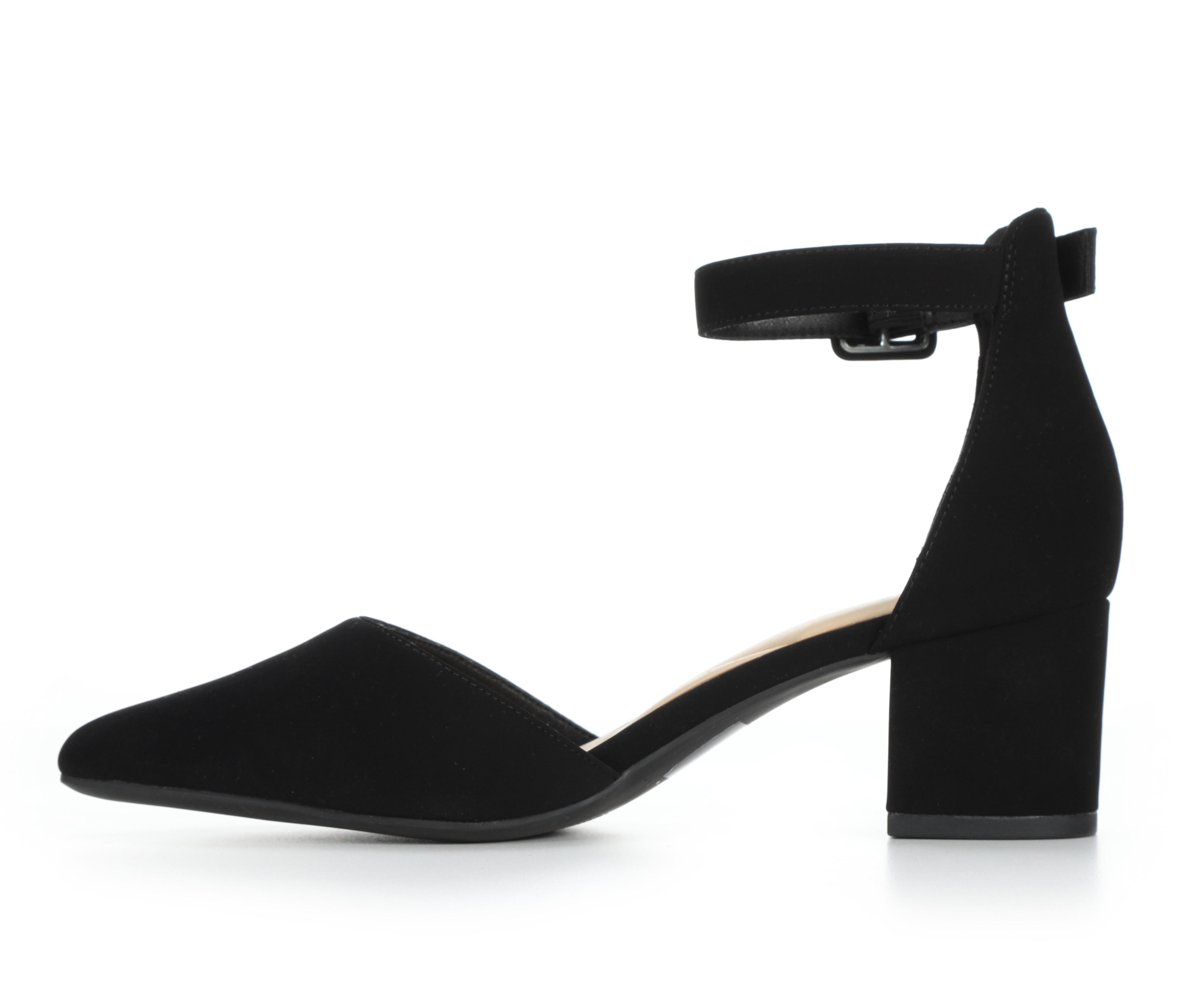 - Mid-height block heel provides balanced lift and lasting comfort