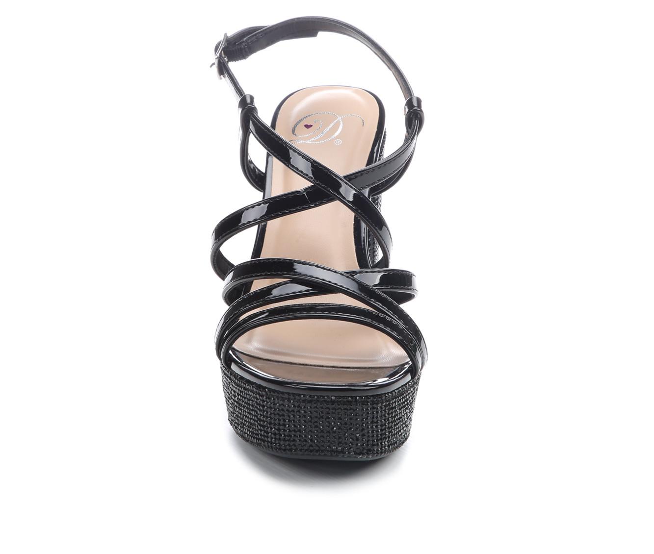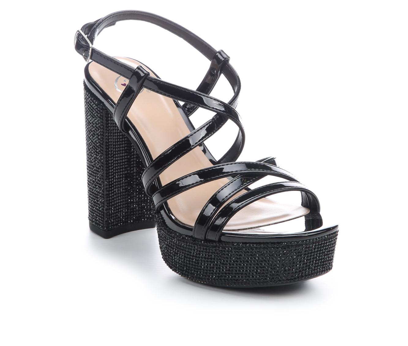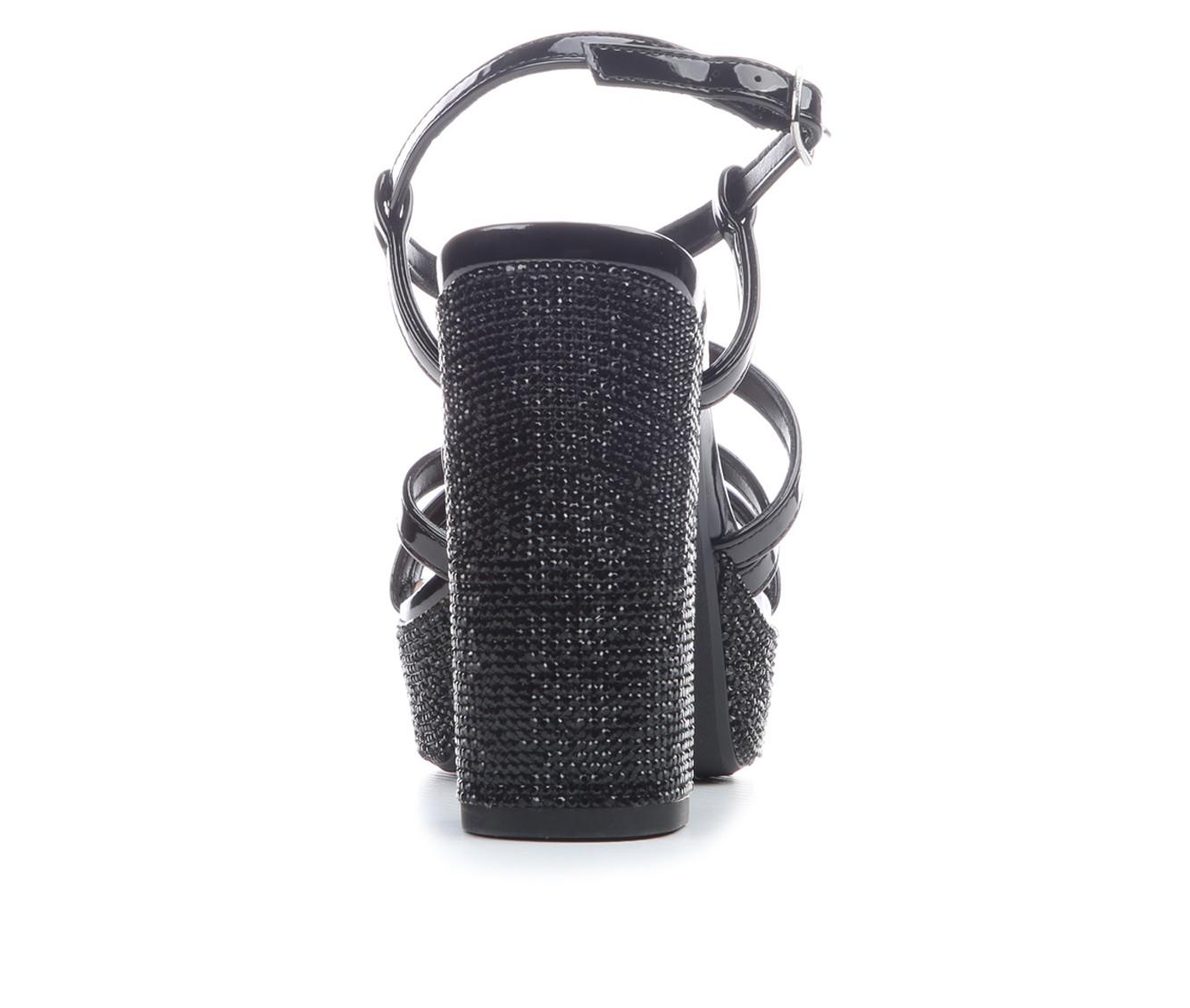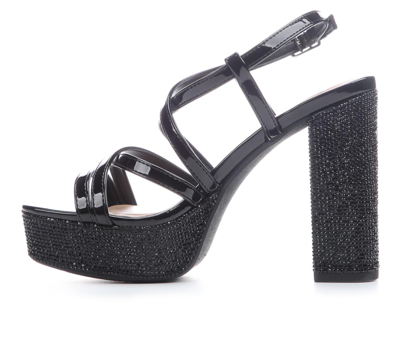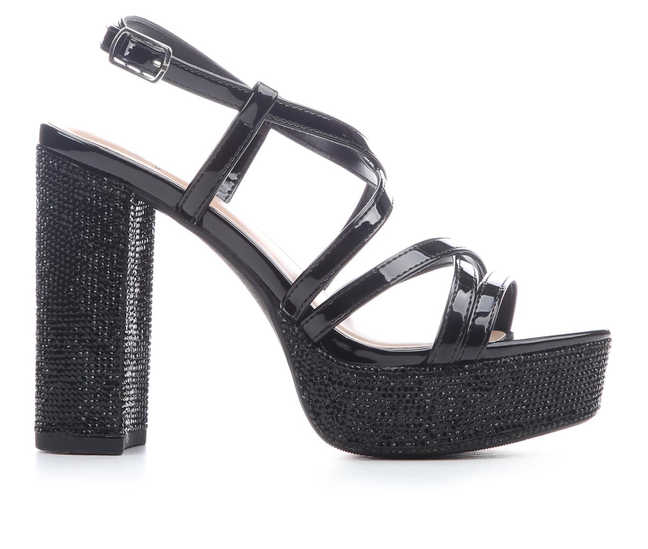 - Rhinestone embellishments across heel and platform for added shine