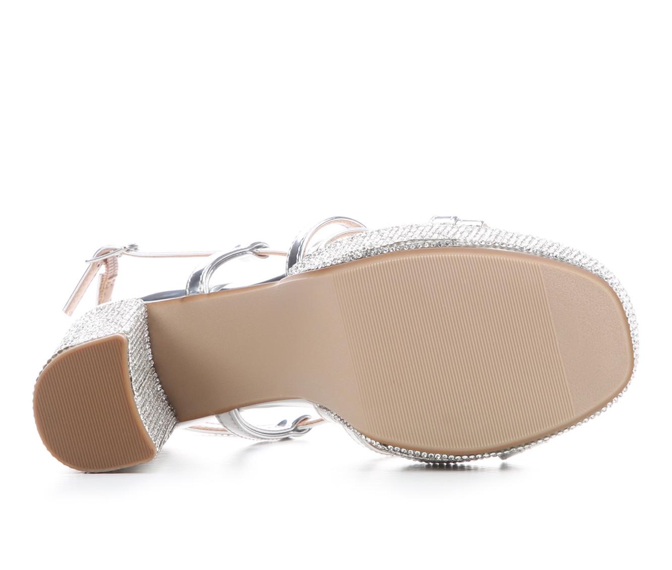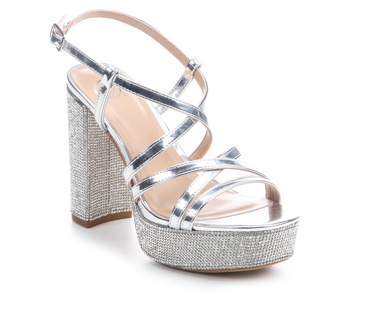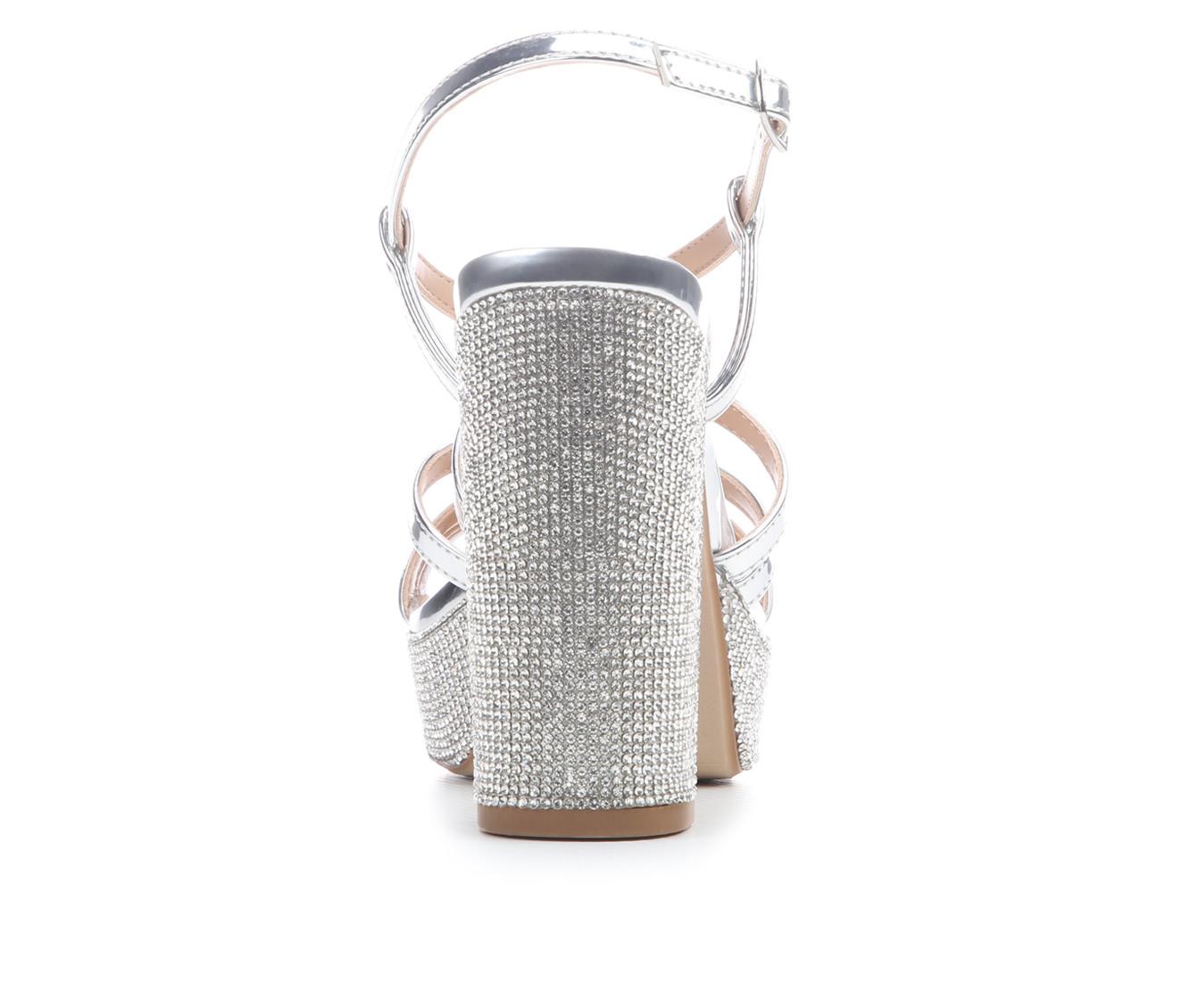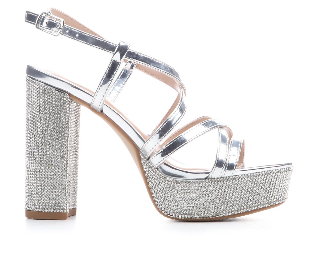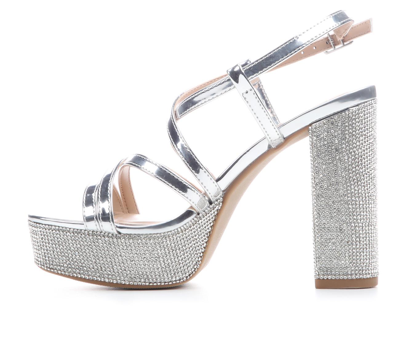 - Rhinestone embellishments across heel and platform for added shine