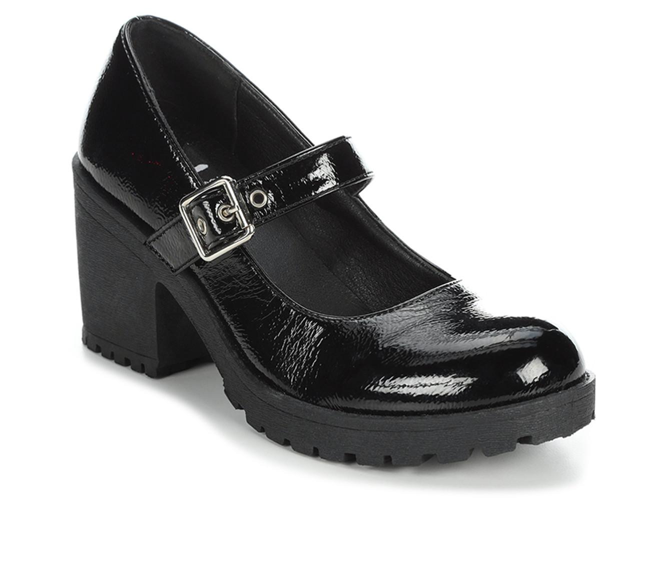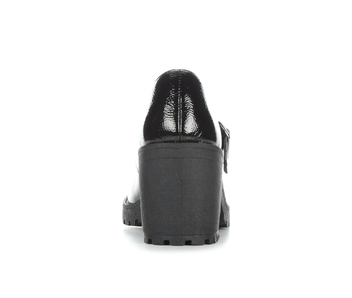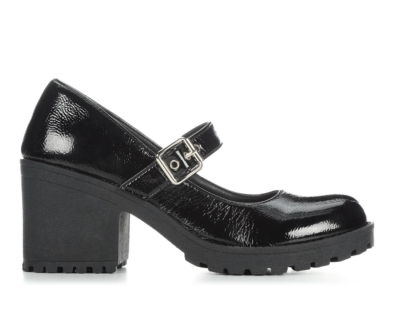 - Block heel for stability and lift