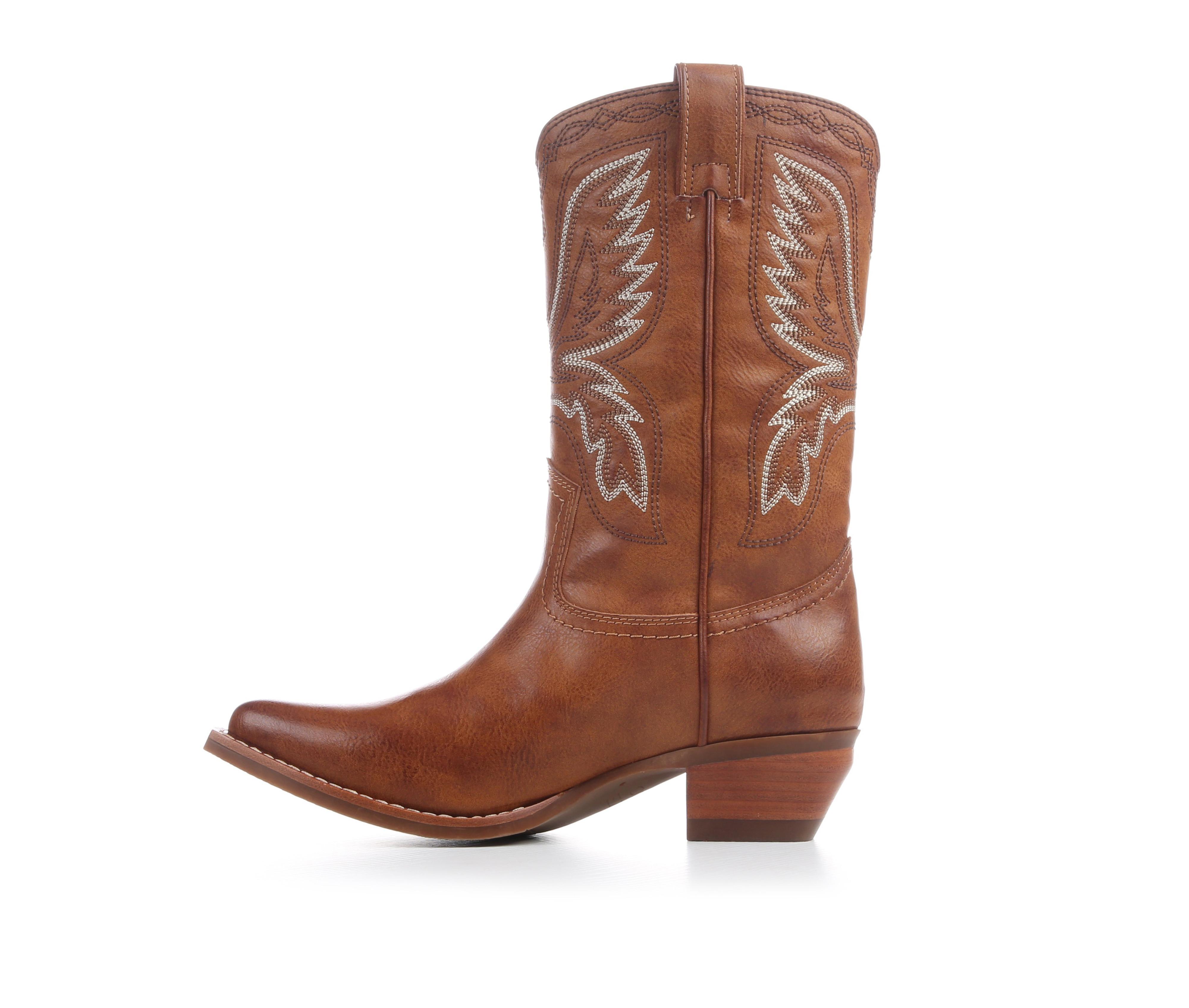 - Faux-leather upper with classic Western stitching