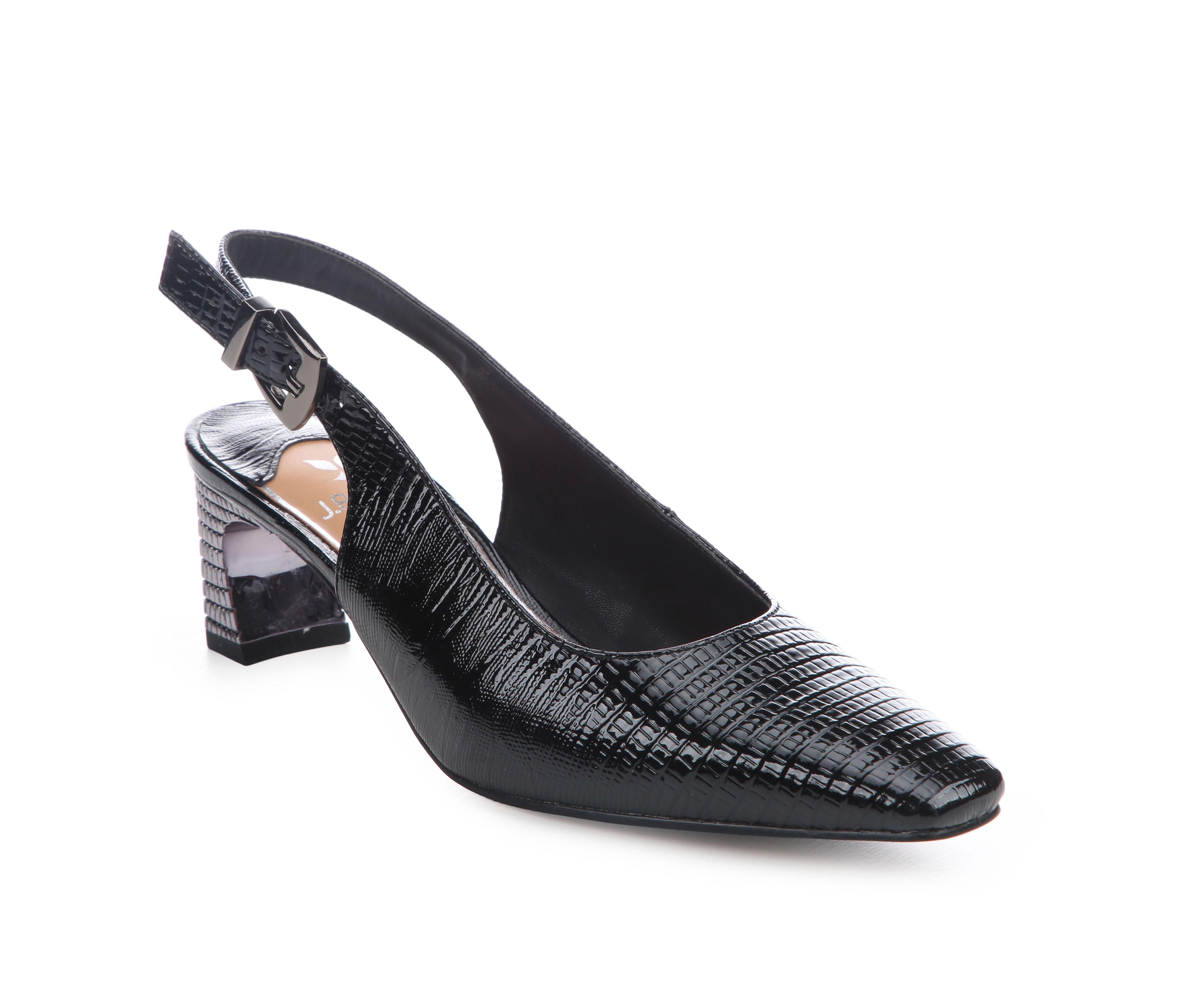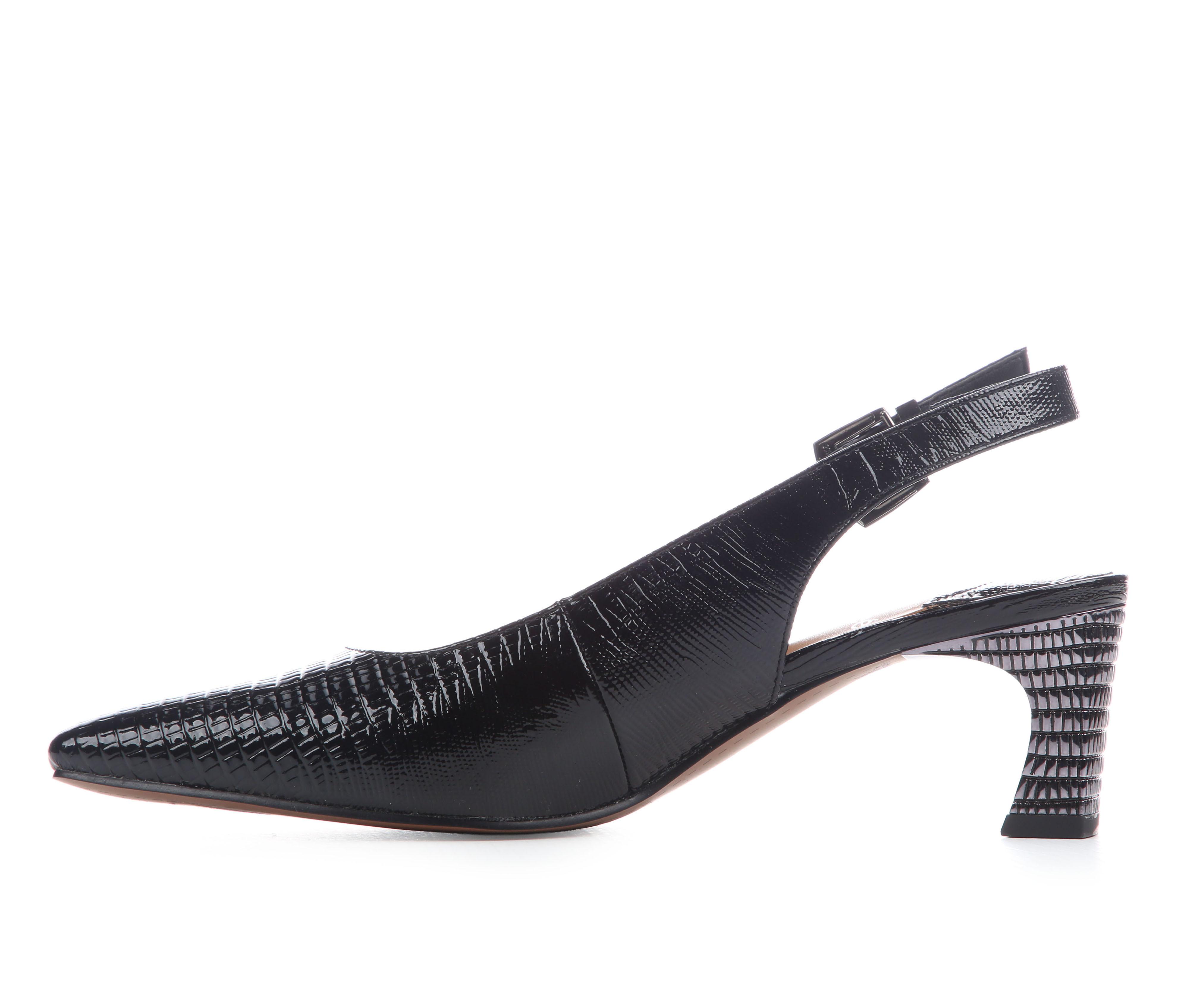 - Adjustable slingback strap with buckle closure