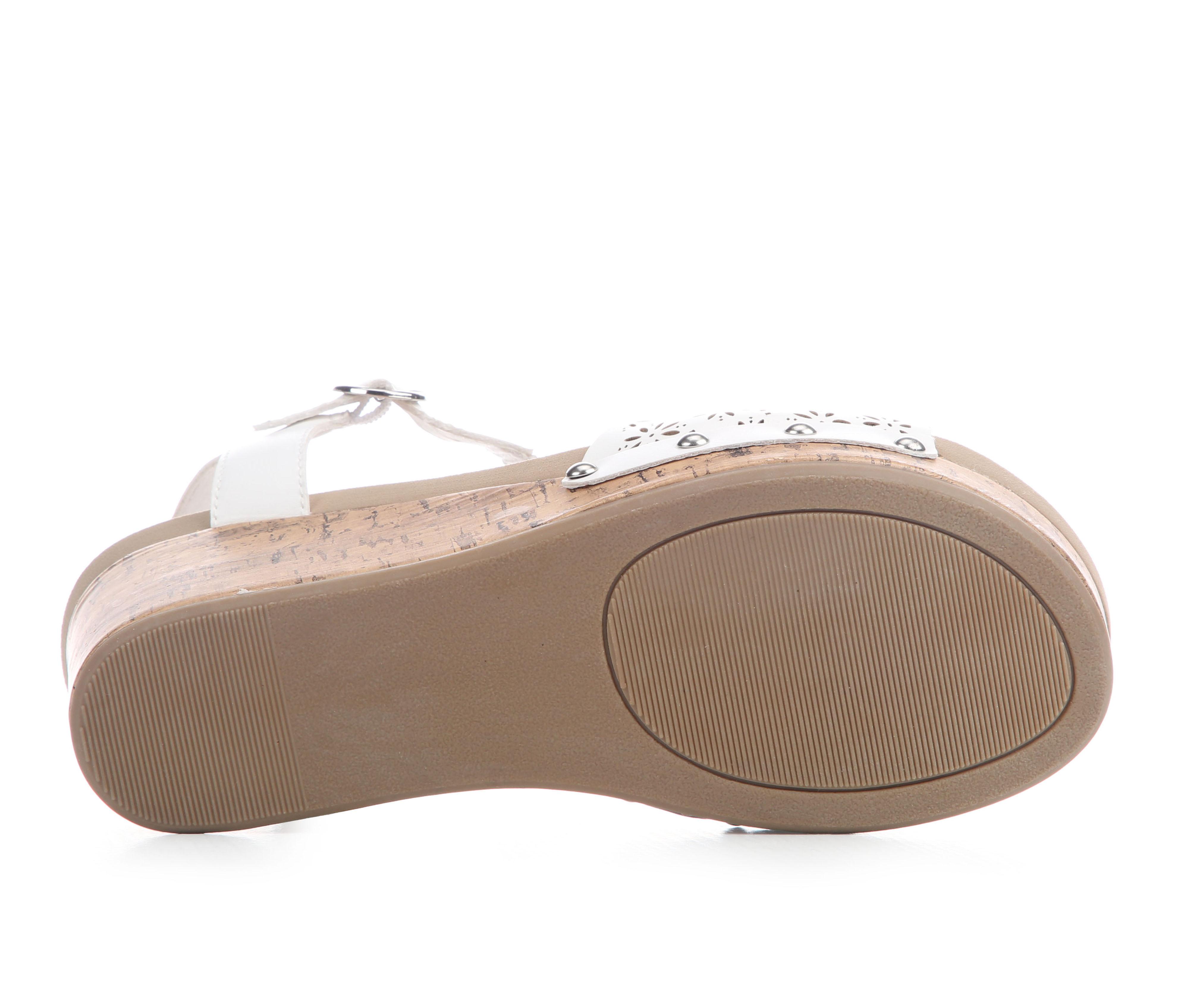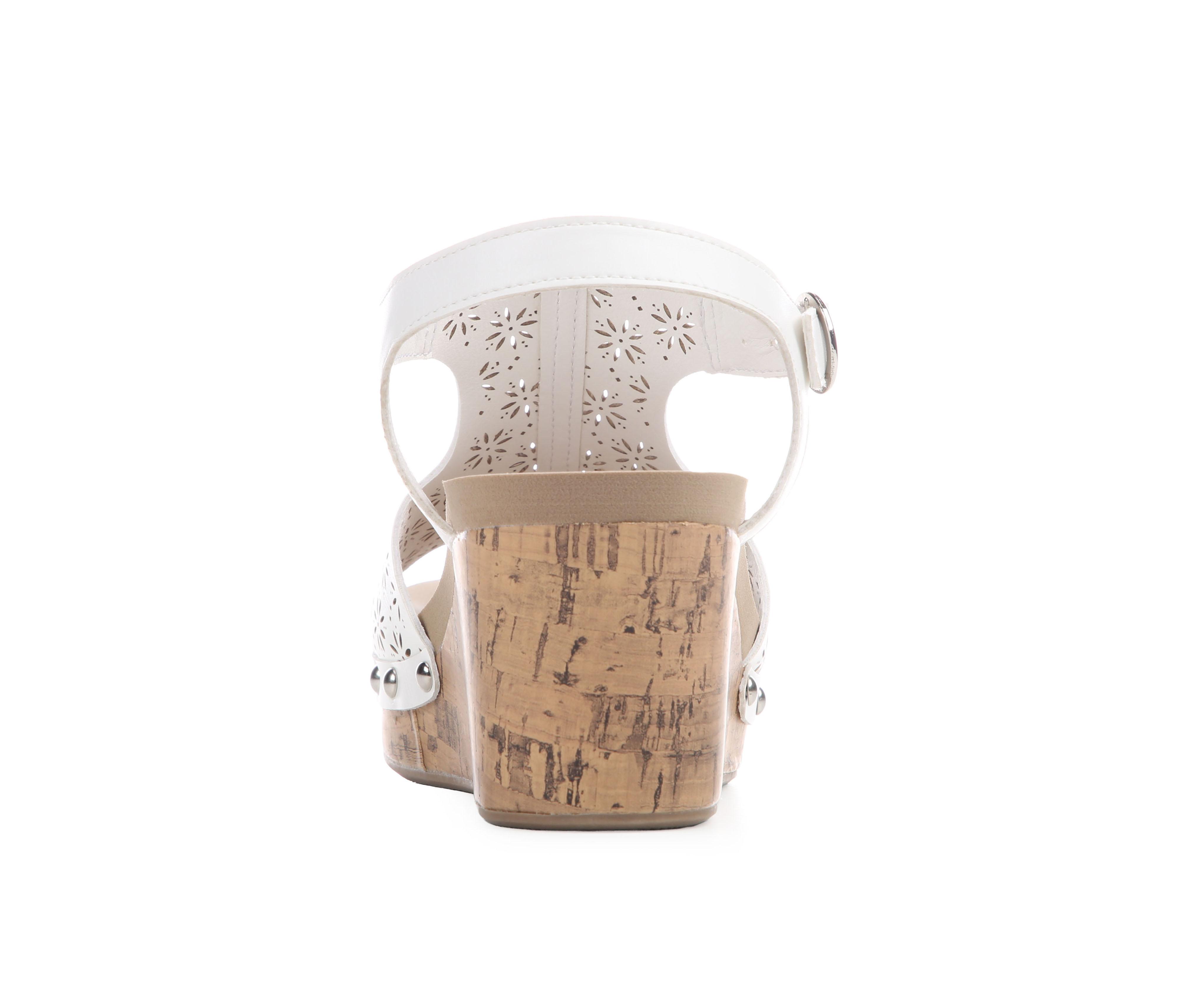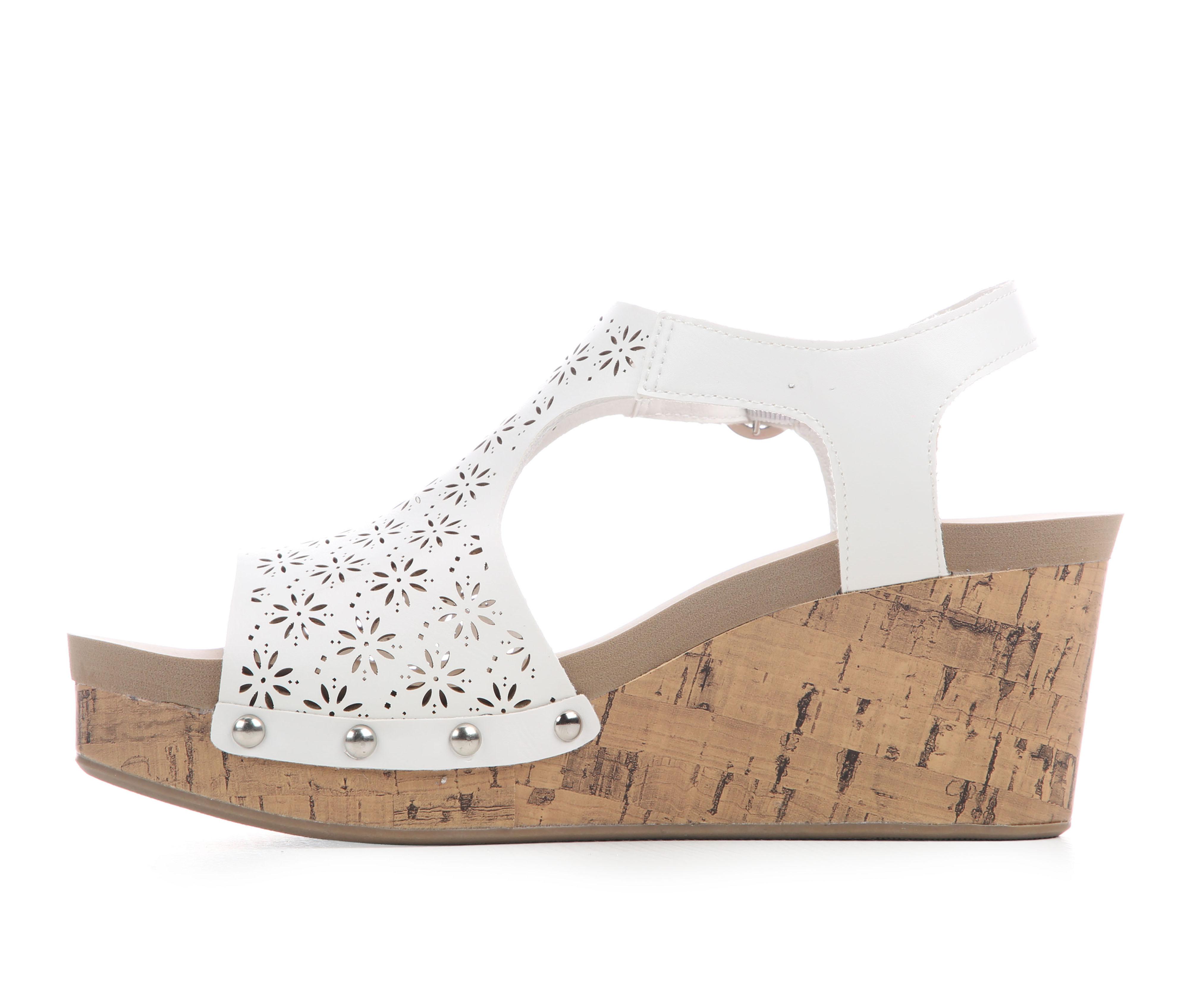 - Cork-textured wedge wrap for elevated height