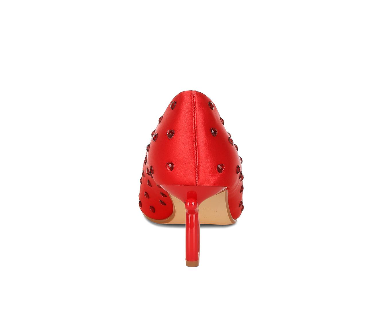 - Satin upper with heart-shaped rhinestone detail