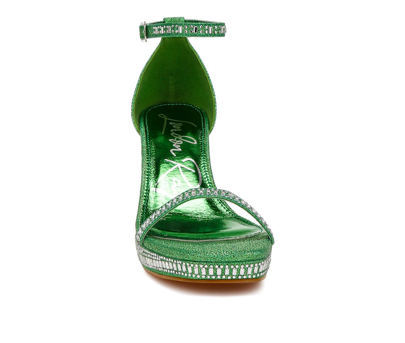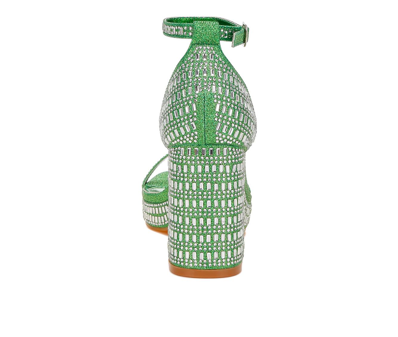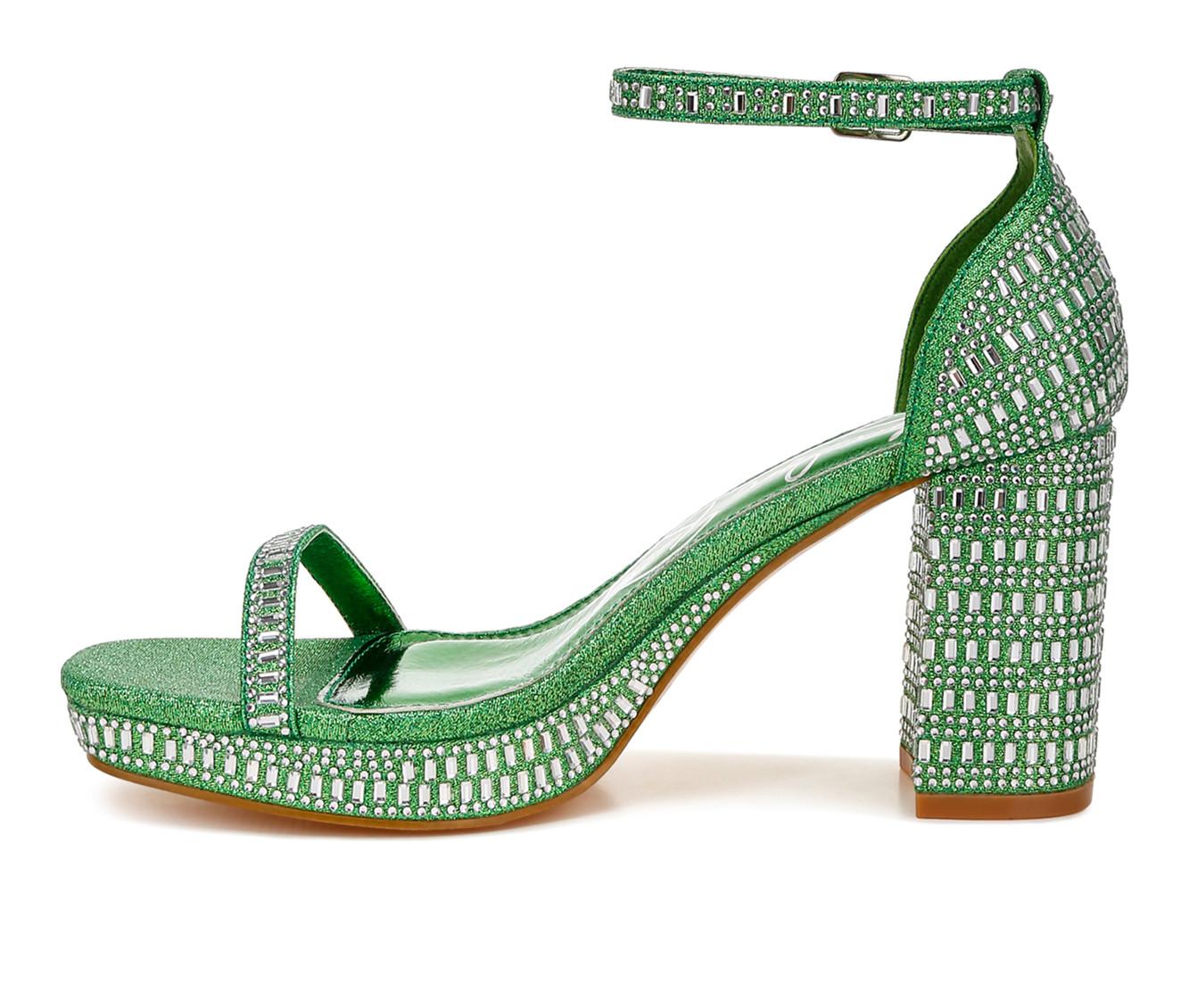 - Shimmer fabric upper with rhinestone accents