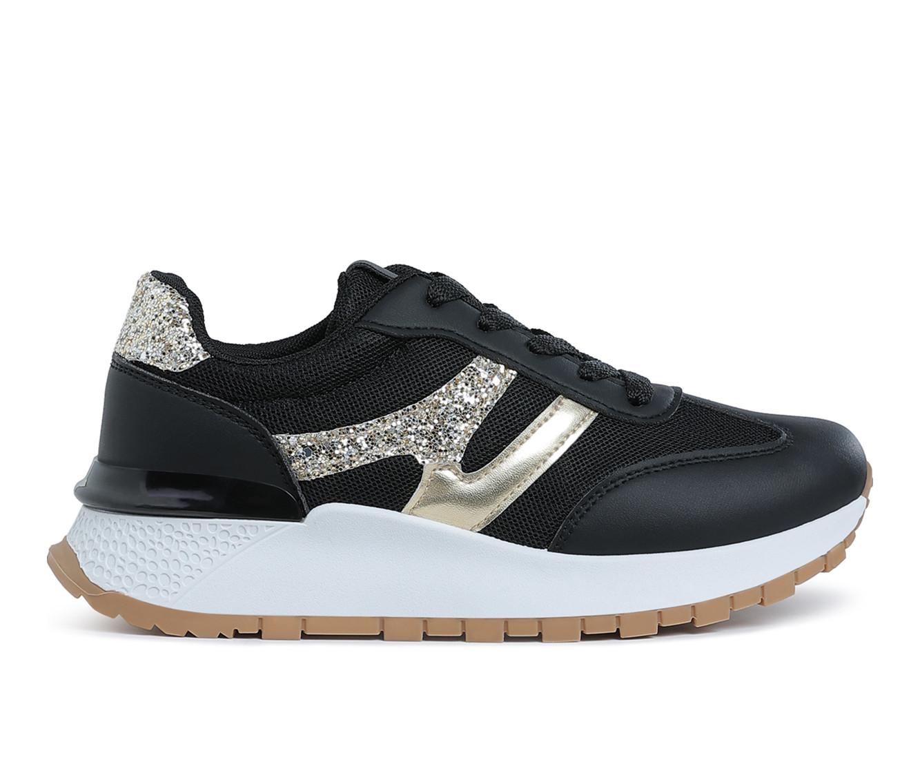 - Faux leather and mesh upper with glitter detailing