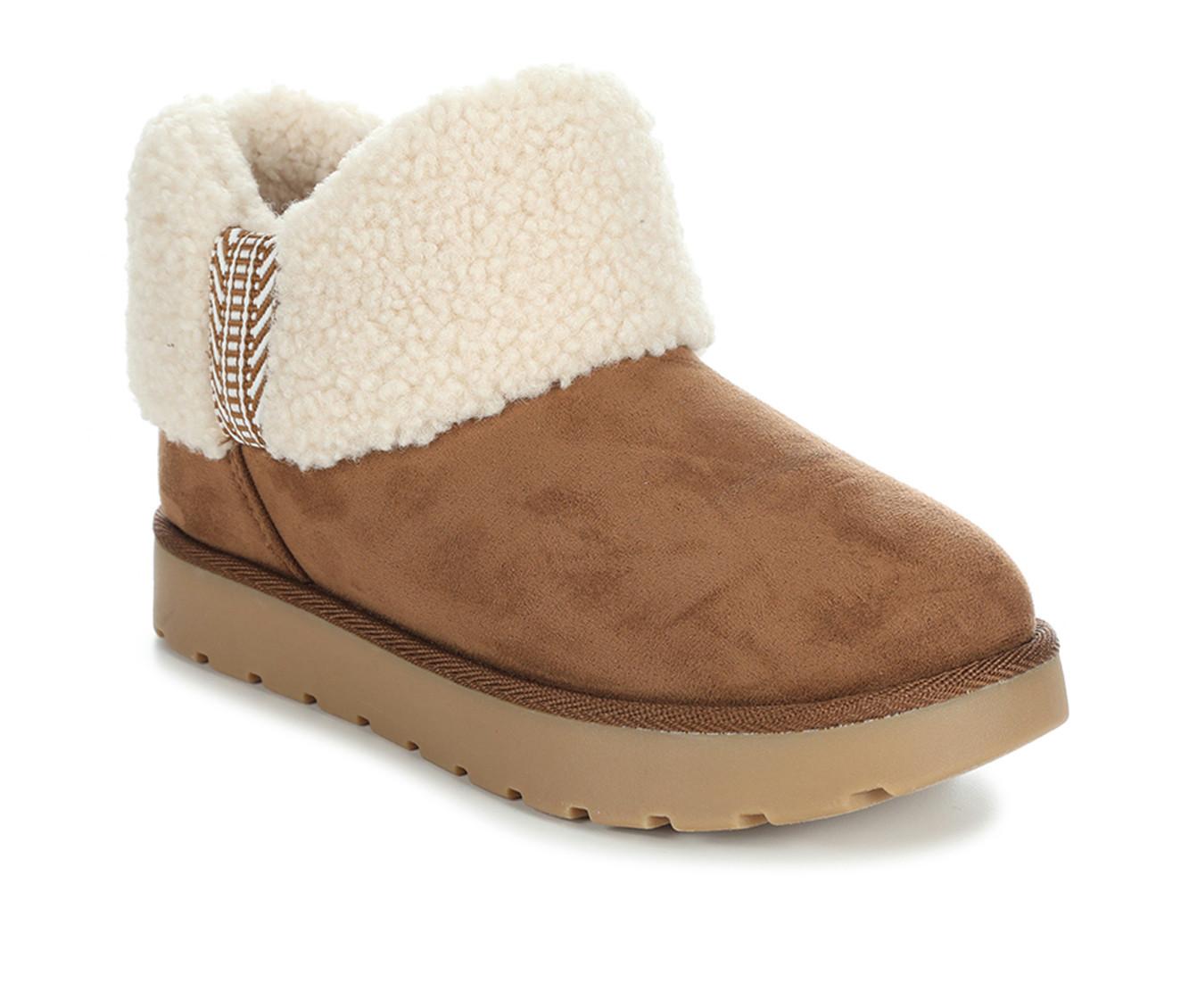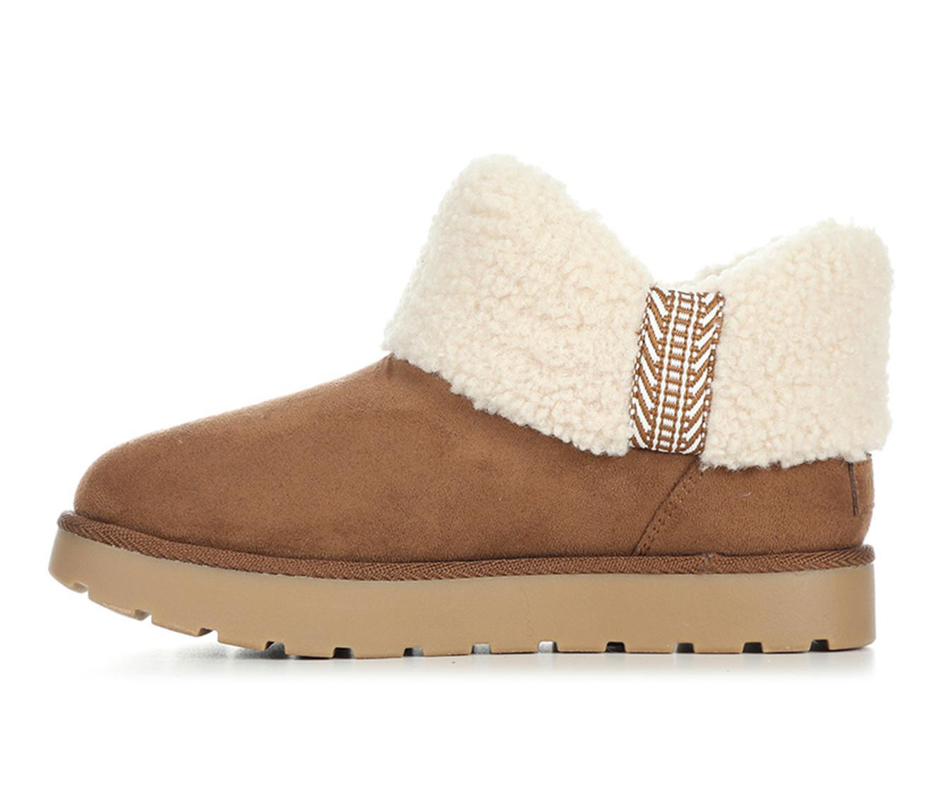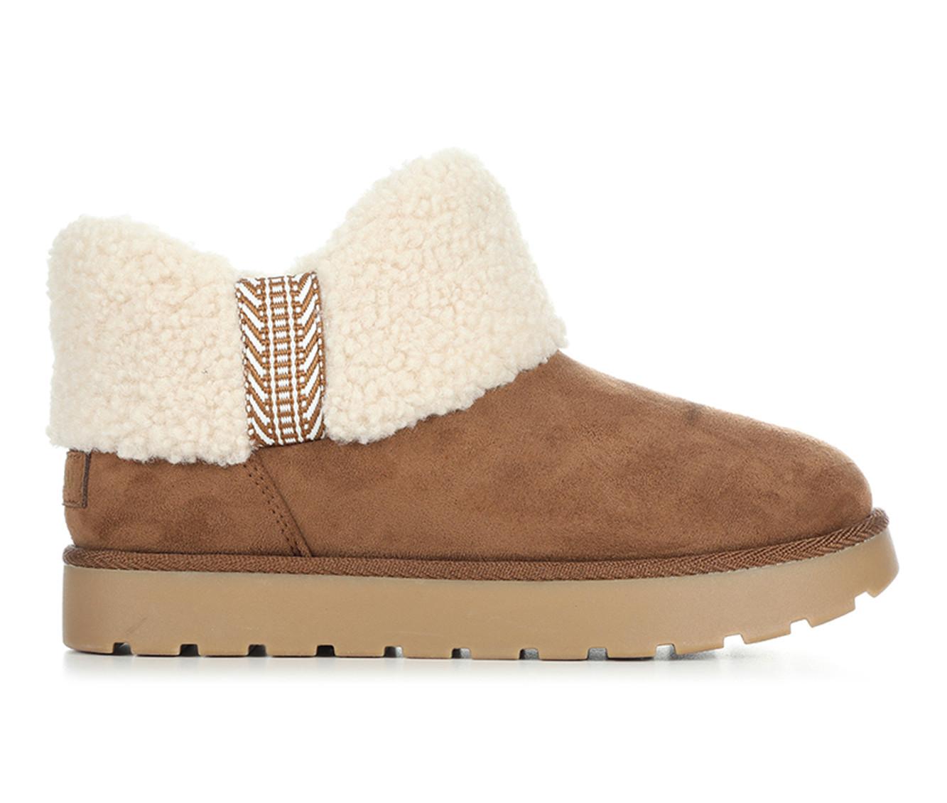 - Suede-like upper with soft sherpa-style collar for warmth