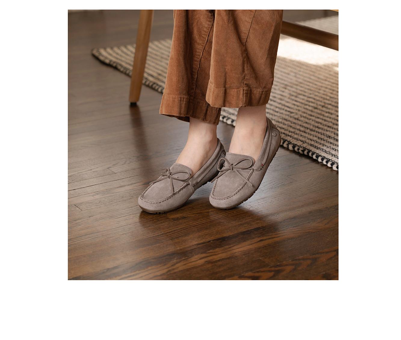 - Suede upper with loafer moc styling
