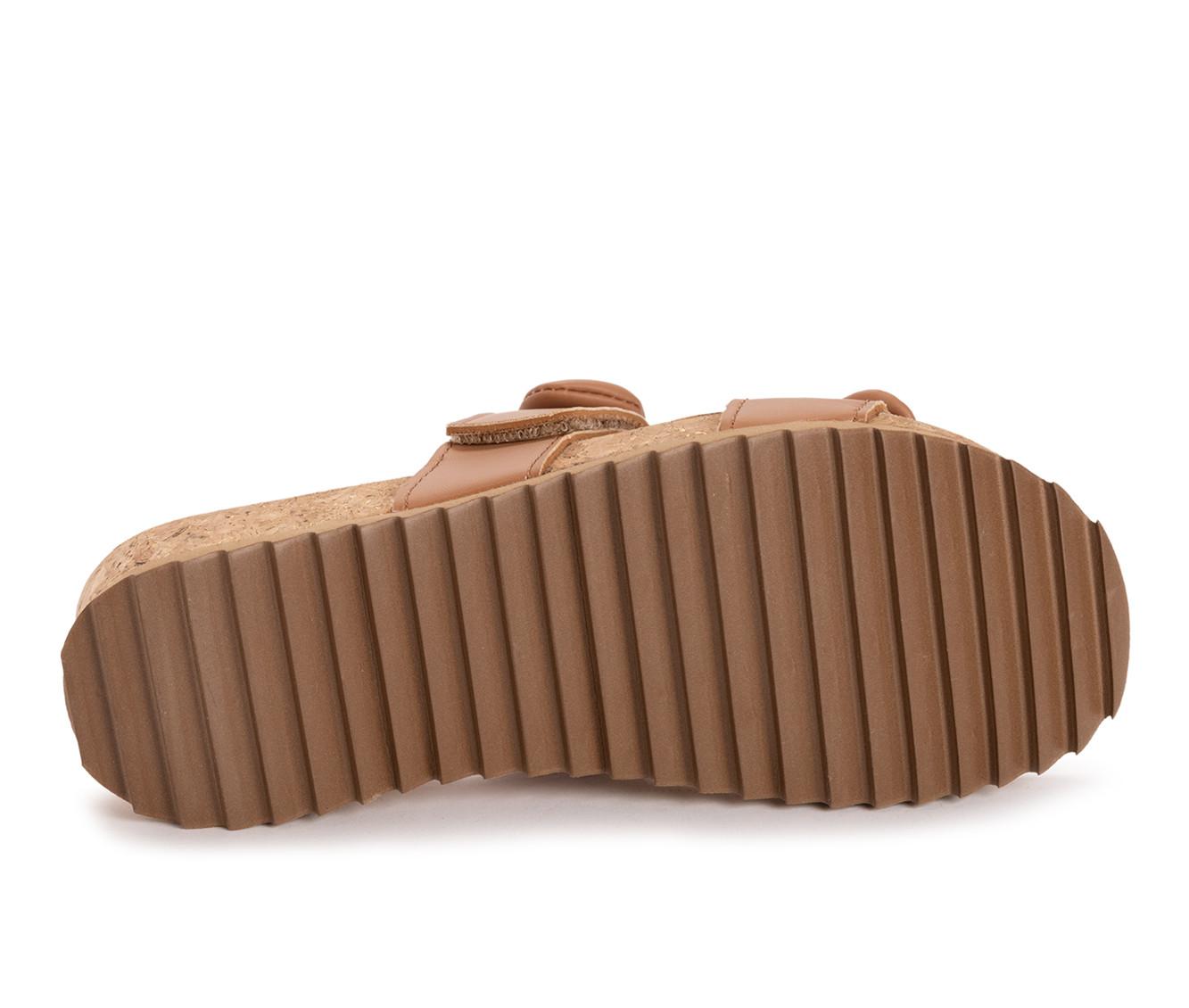 - Cork-style platform footbed offers natural contouring and casual appeal