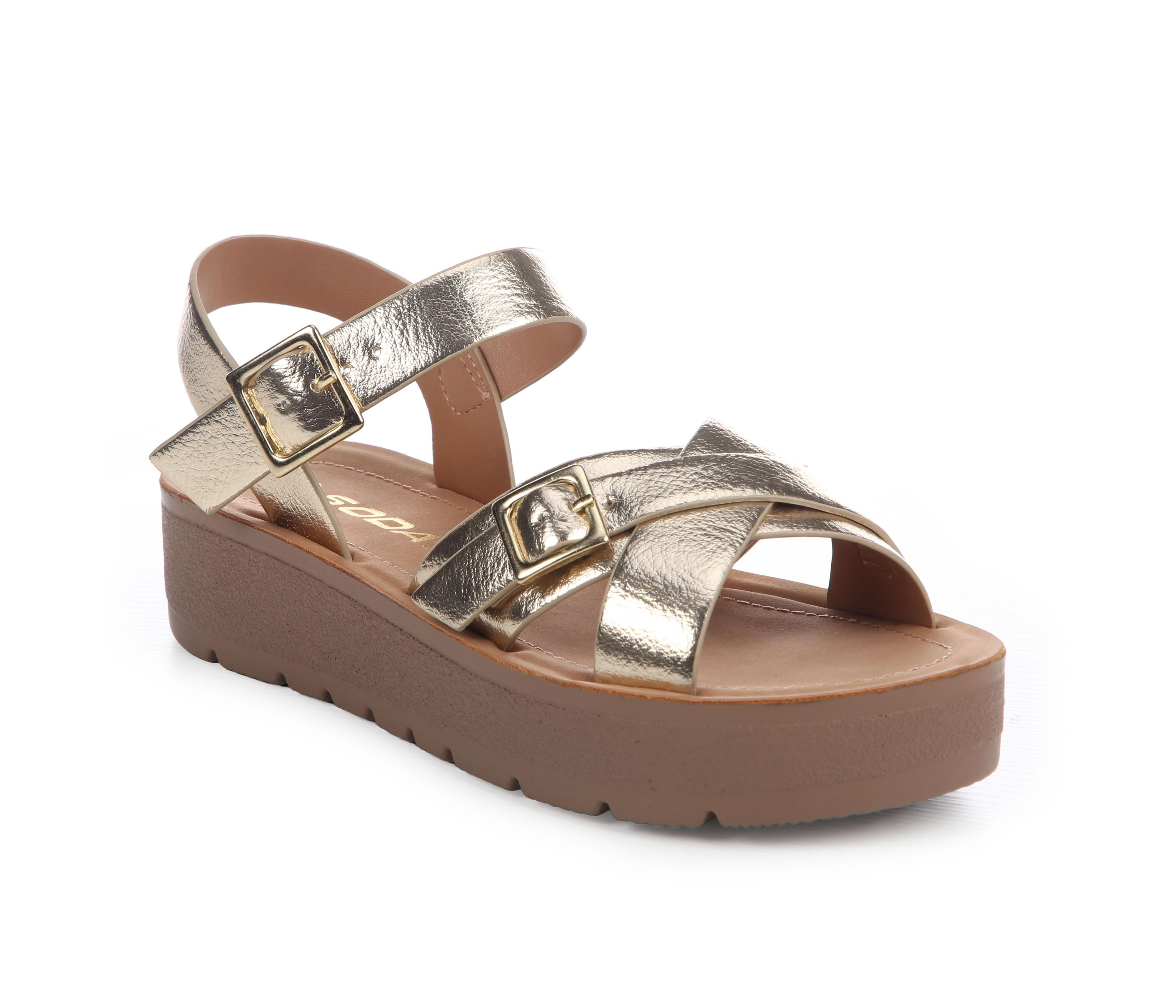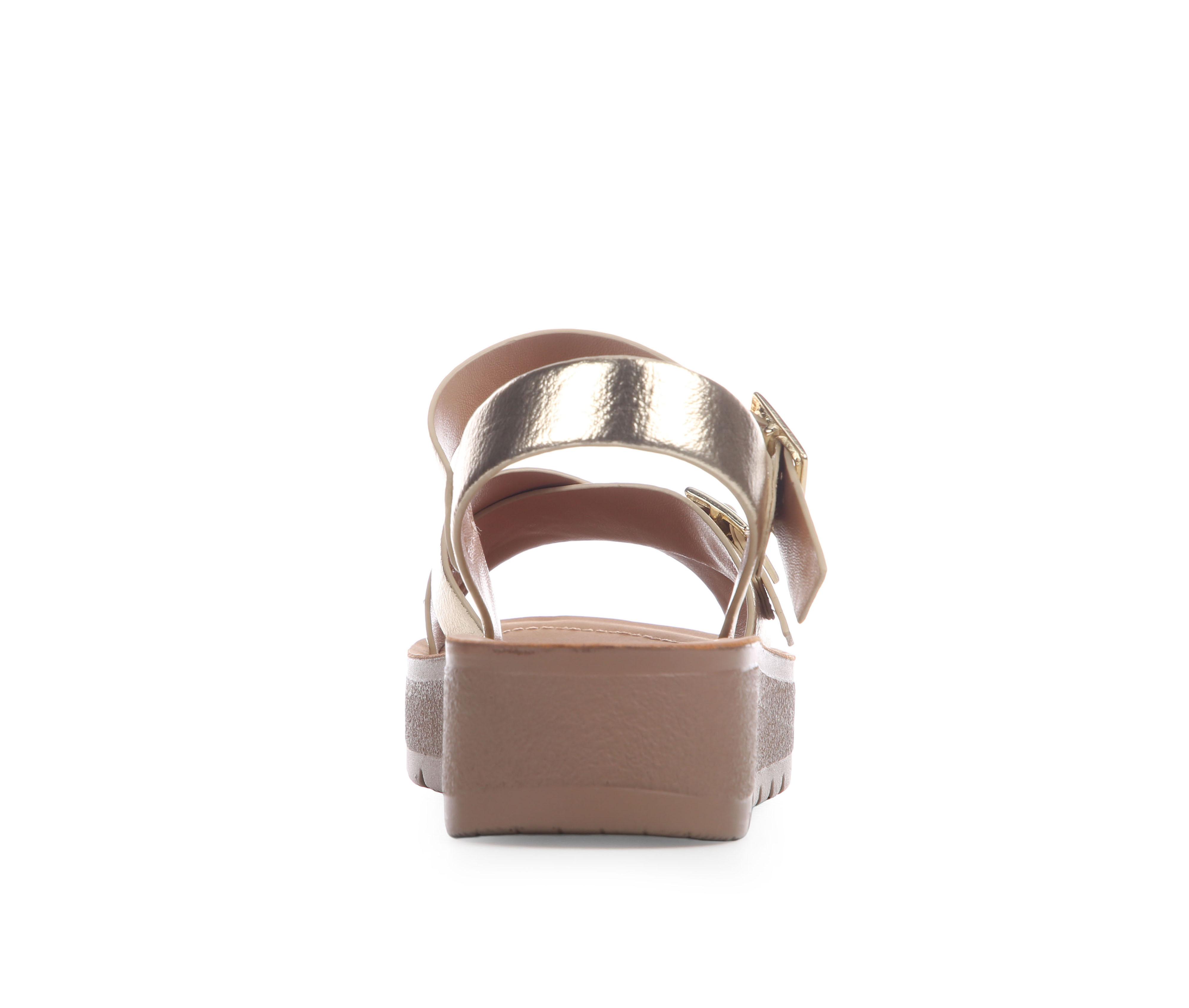 - Open-toe sandal silhouette for warm-weather wear
