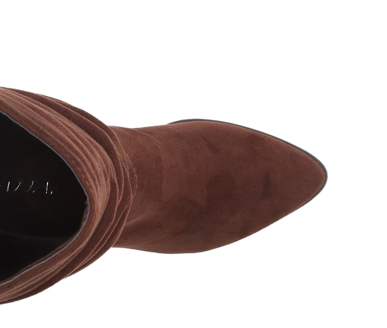 - Faux-suede upper with slouchy shaft design